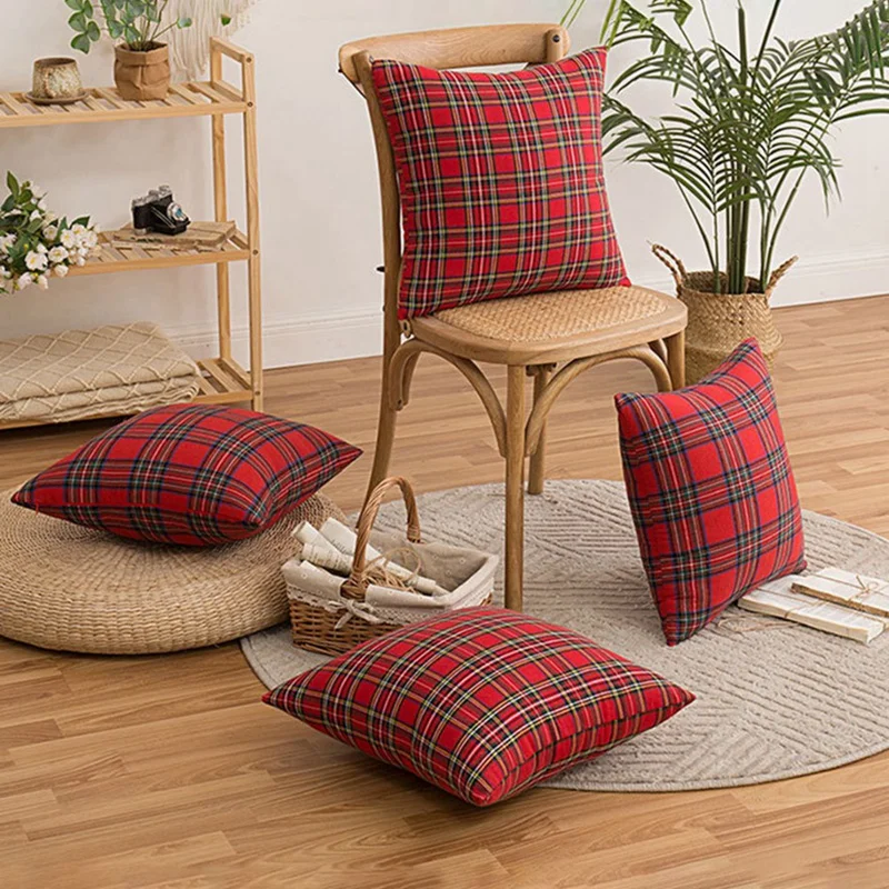 45/50cm 2/4PCS Red Plaid Christmas Cushion Cover Pillowcase Christmas Decorations for Home Ornament New Year Christmas Decor