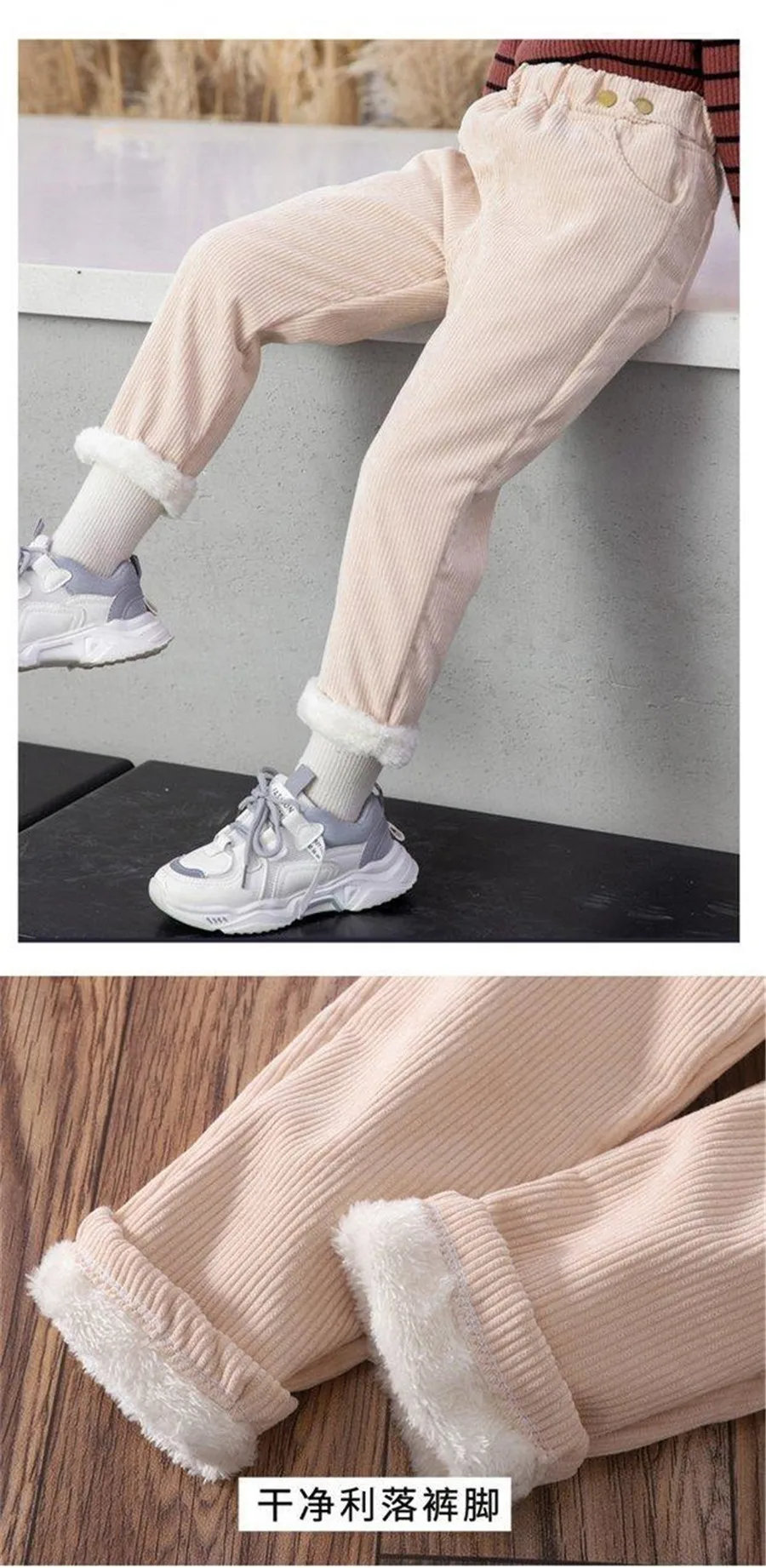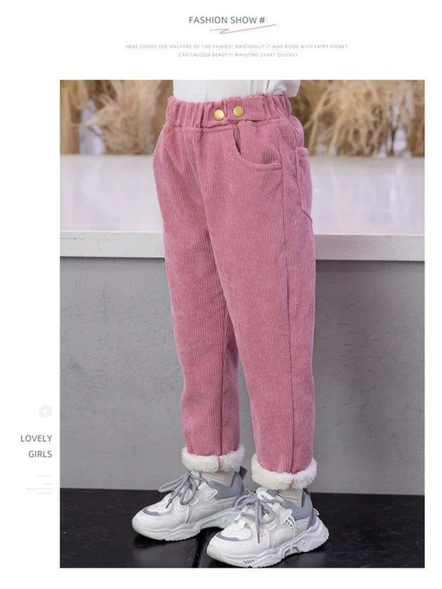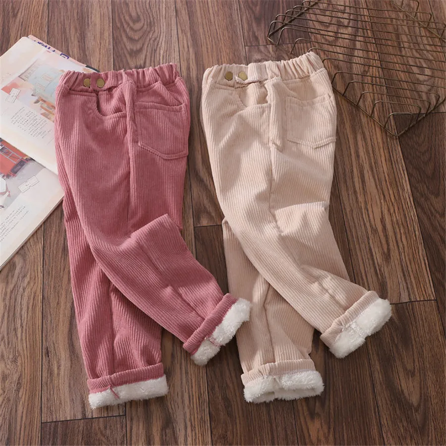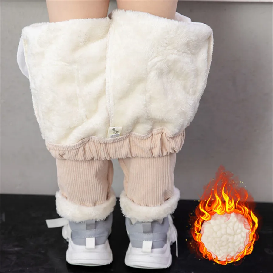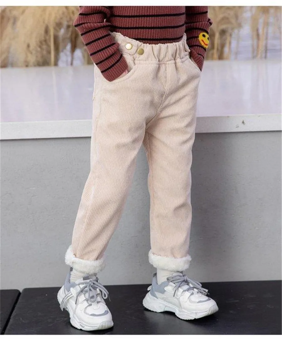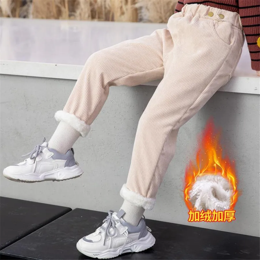 Winter Children Pants Girls Plus Velvet Thick Jeans High Waist Warm Trousers Kids 4 to13Years Baby Clothes Pencil Pants