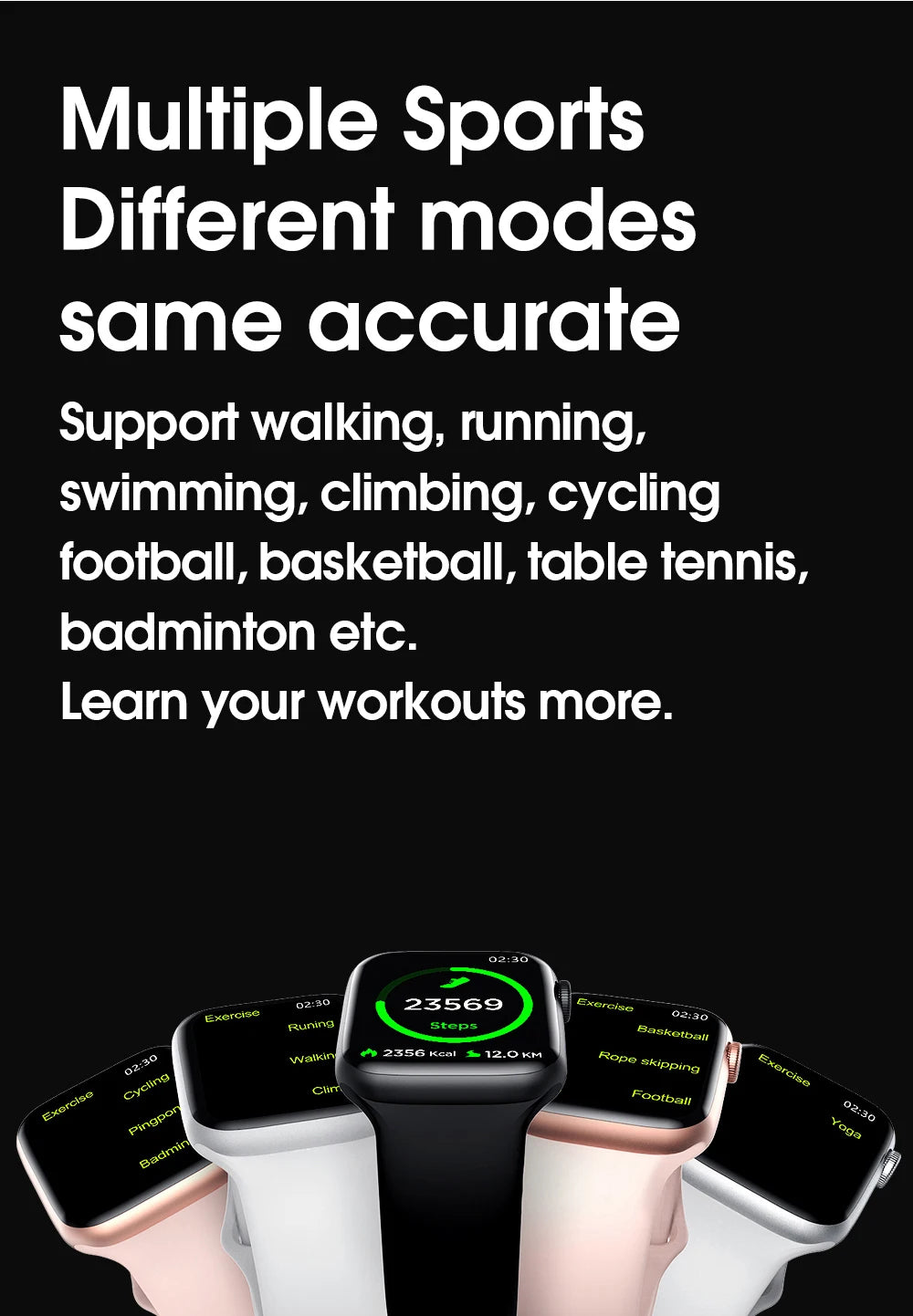 Support Bluetooth calling, Body temperature test, Heart Rate, BP & ECG, Steps, 44mm changeable band, Smart Beehive style menu, The nine box menu, IP68 waterproof.