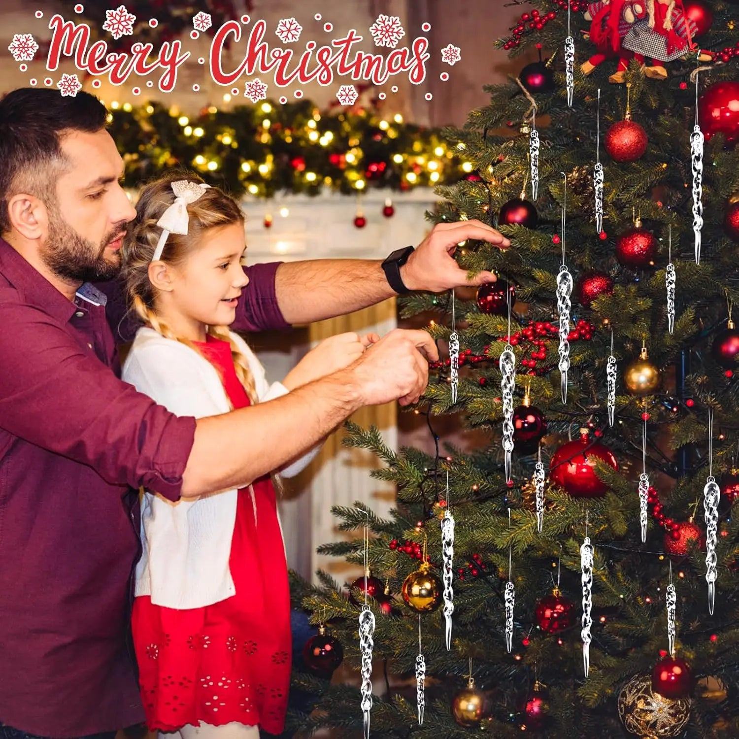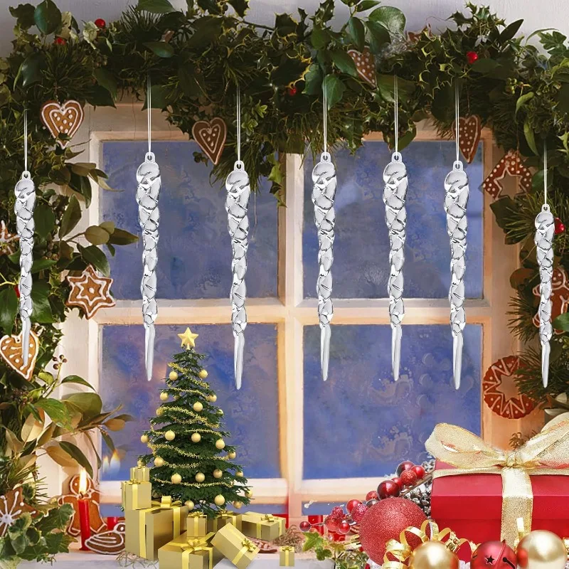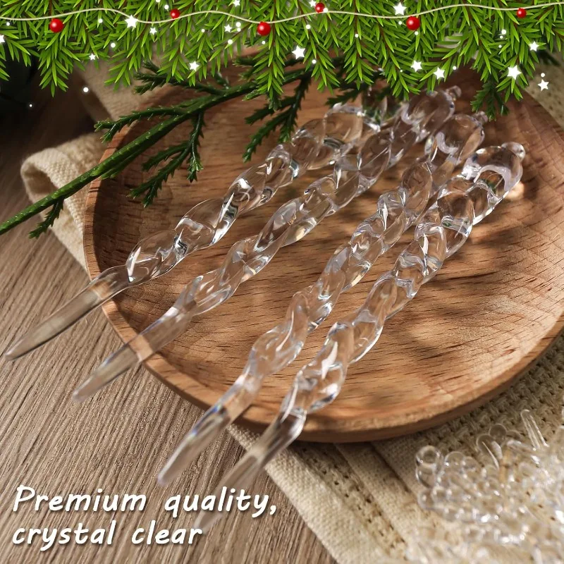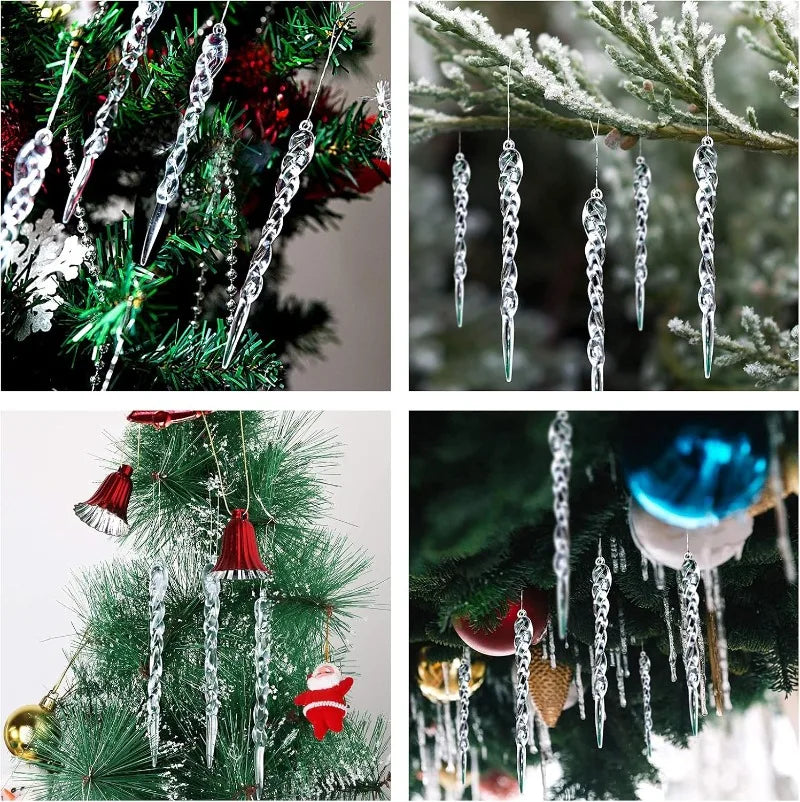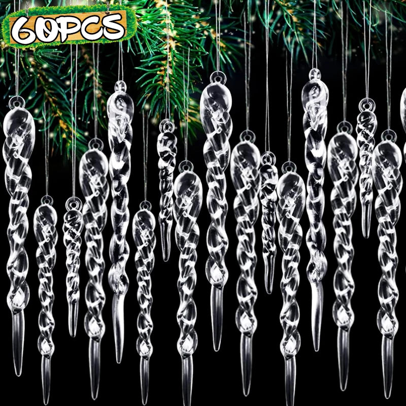 12-60pcs Transparent Crystal Christmas Ornaments Twisted Hanging Icicle Xmas Tree Pendant for Holiday Winter Party Decoration