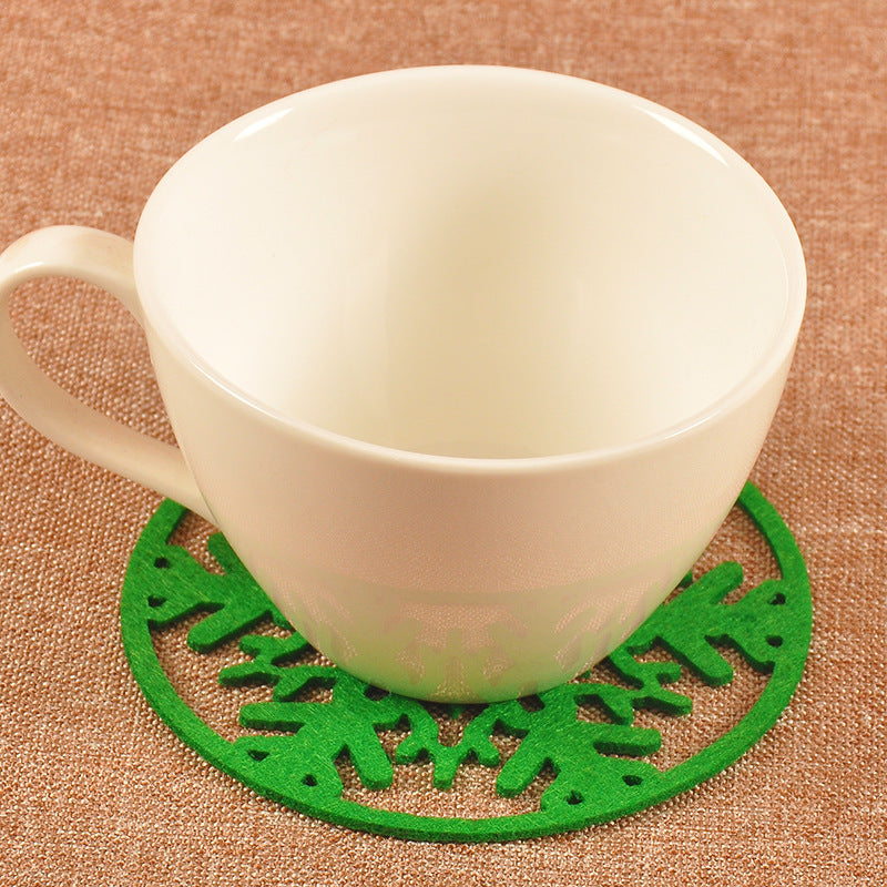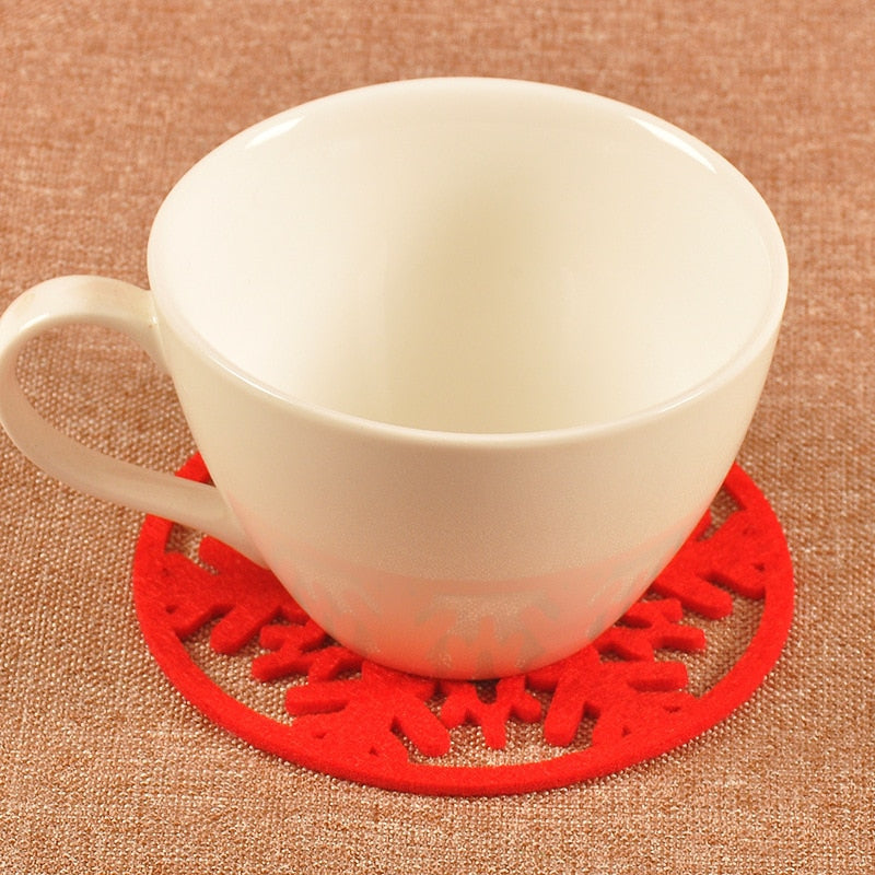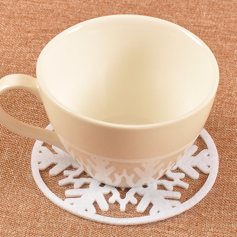 2Pcs 10cm Snowflake Shape Felt Round Dining Pad Christmas Party DIY Kitchen Decor Home Heat Insulation Xmas Mat Decoration 62298