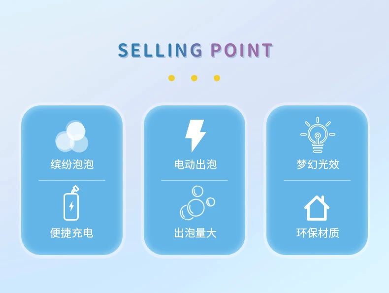 -Safe Cooling Fan Mode: The fan uses soft sponge rotor blades to provide safe bubble toys for your children and pets. When the child is tired of chasing, he will feel very hot. The bubble gun can be used as a small fan to bring cool and comfortable wind.
