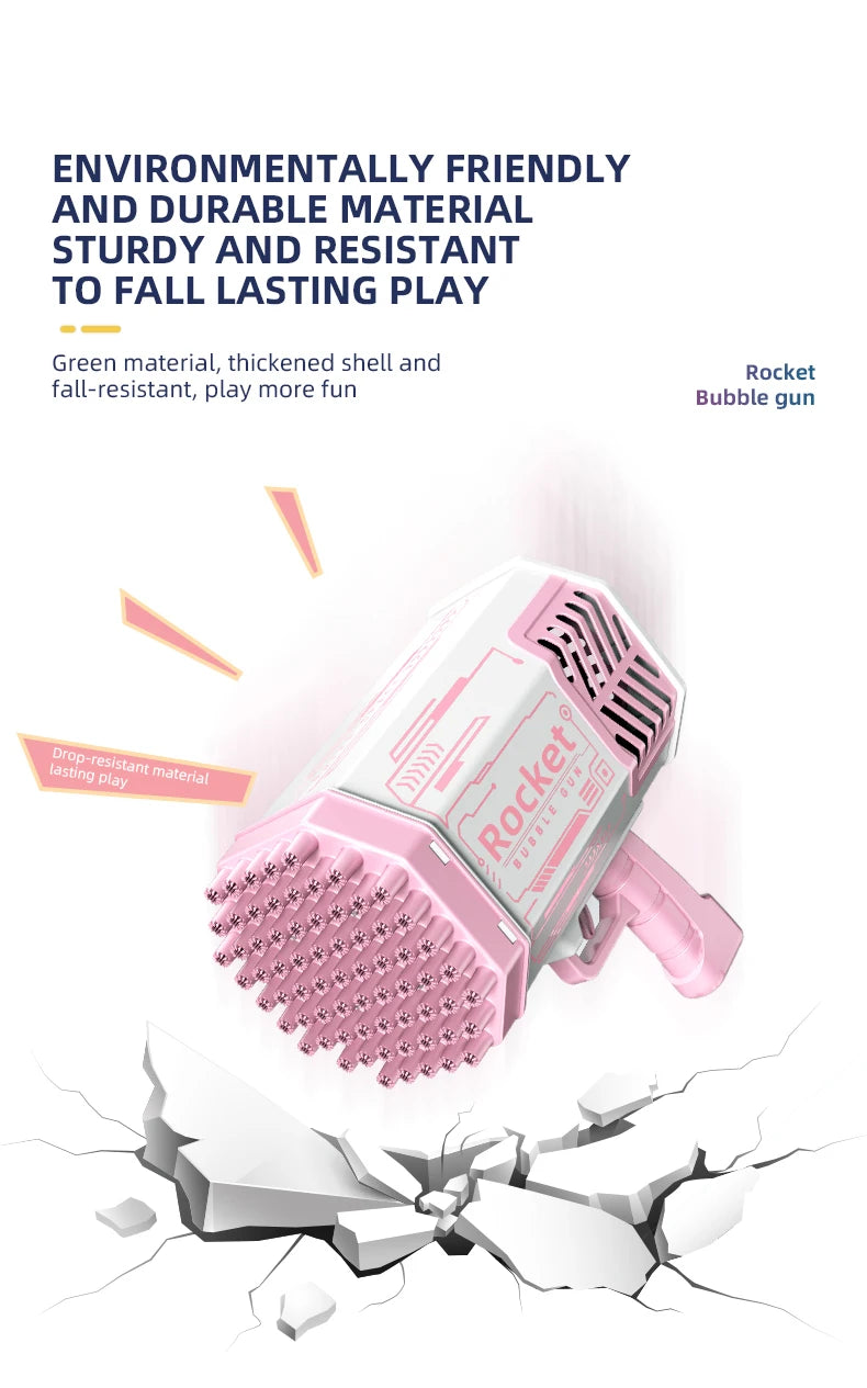 -Innovative Bubble Gun Design: The bubble rocket launcher has 69 bubble holes, blowing thousands of colorful bubbles every minute.with colorful light.more funny in night