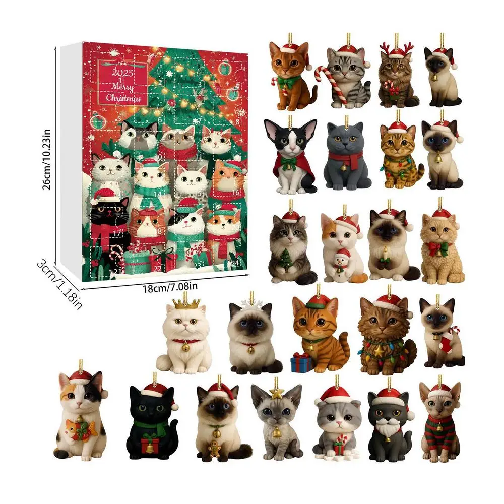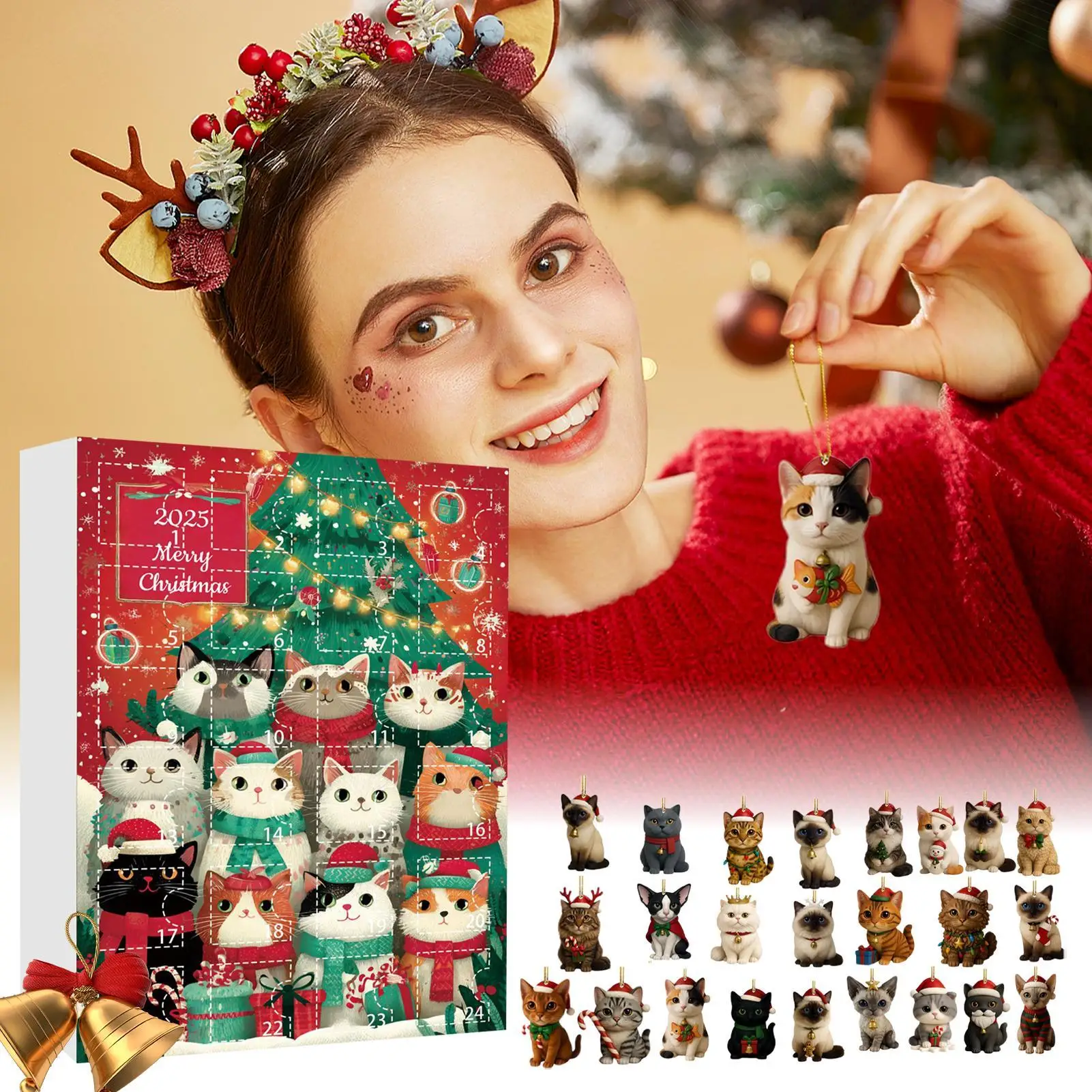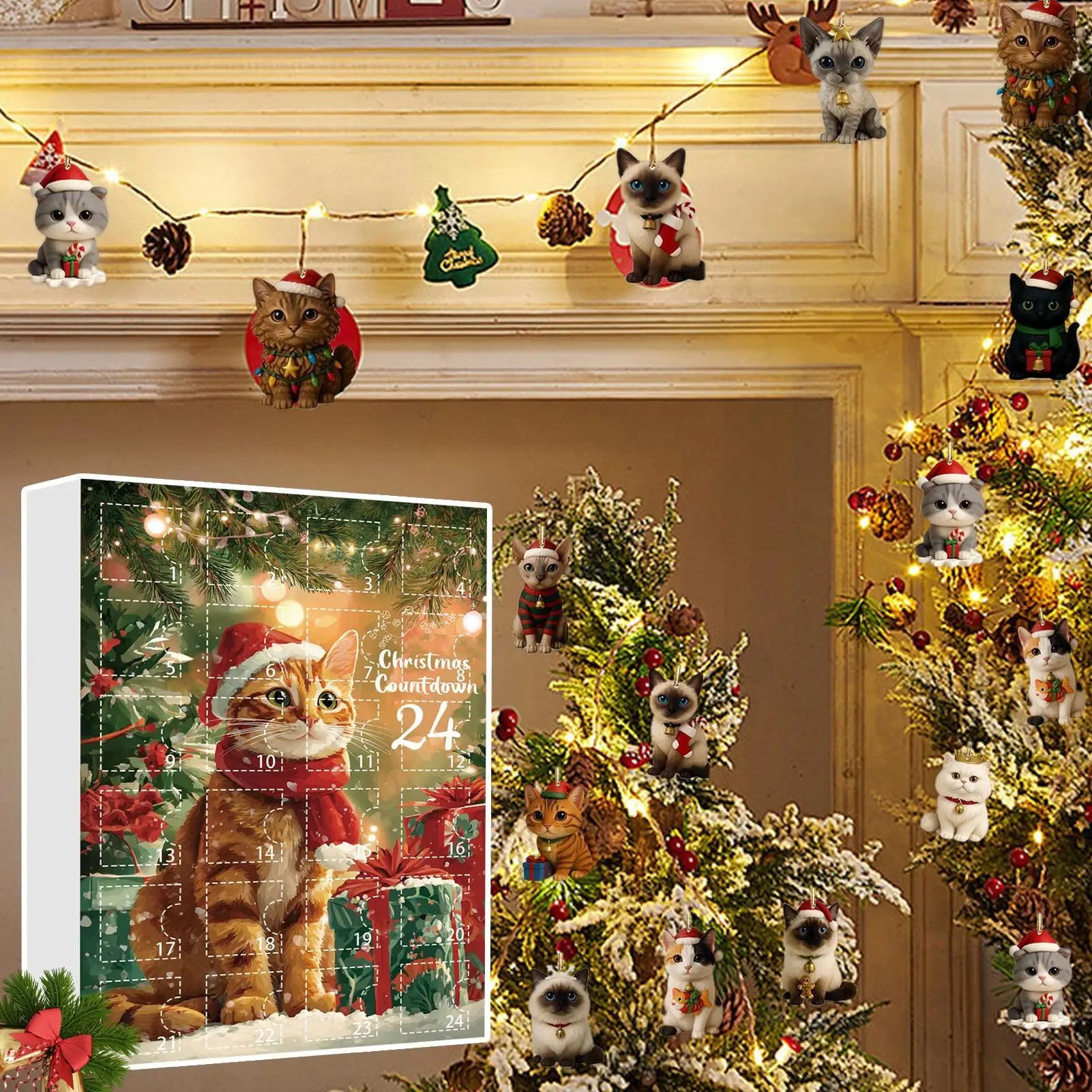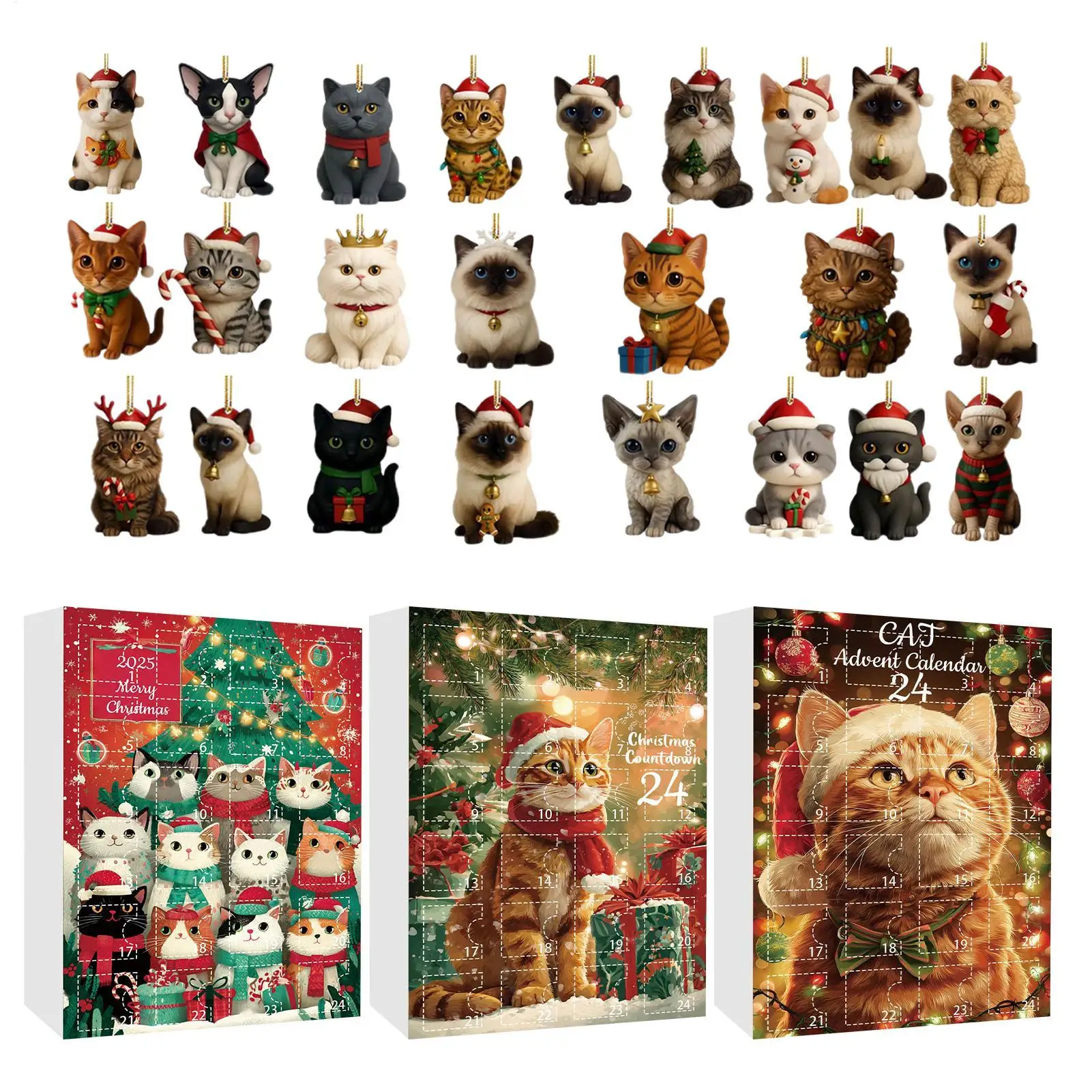 Cat Christmas Countdown Calendar Keychain 2D Acrylic Ornament Charm Advent Calendar Cute Cat Lover Gift Christmas Decorations