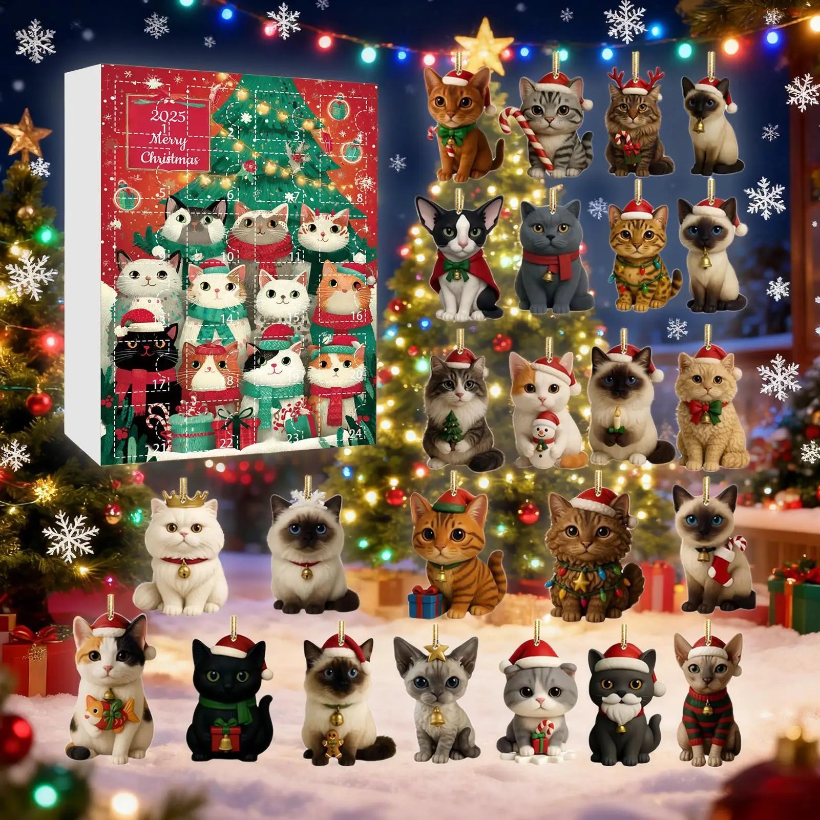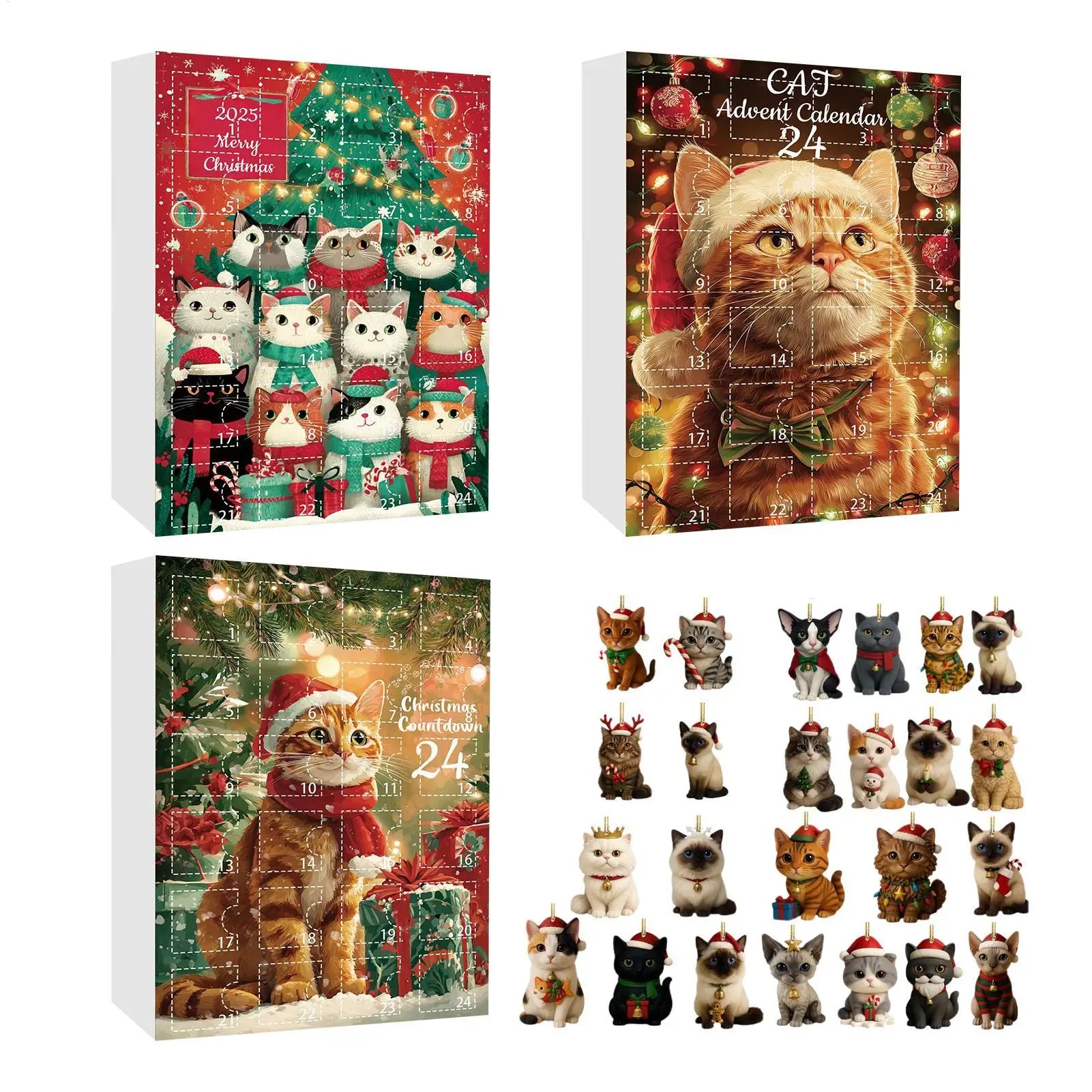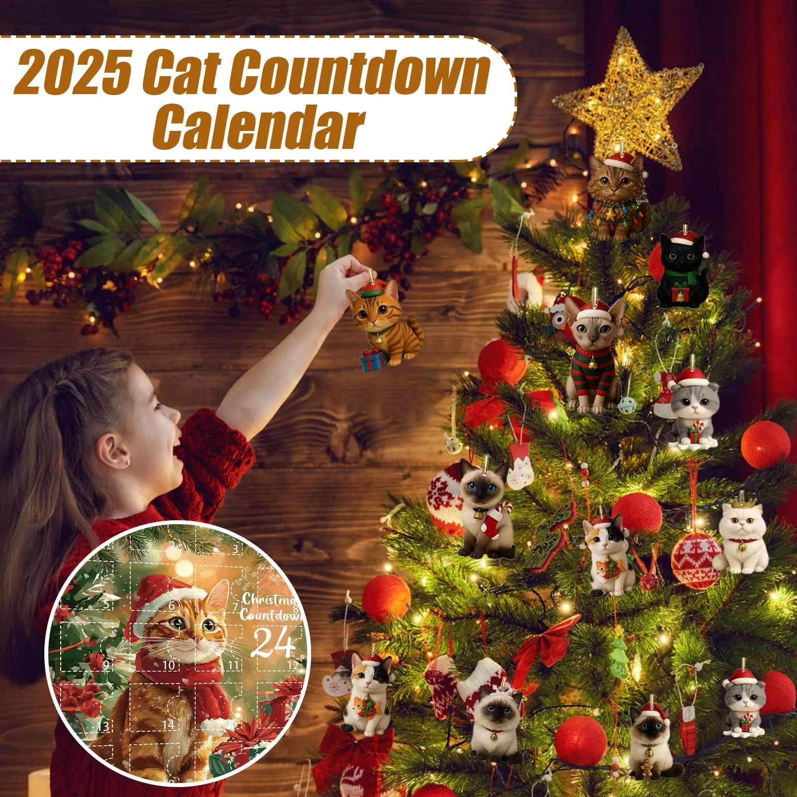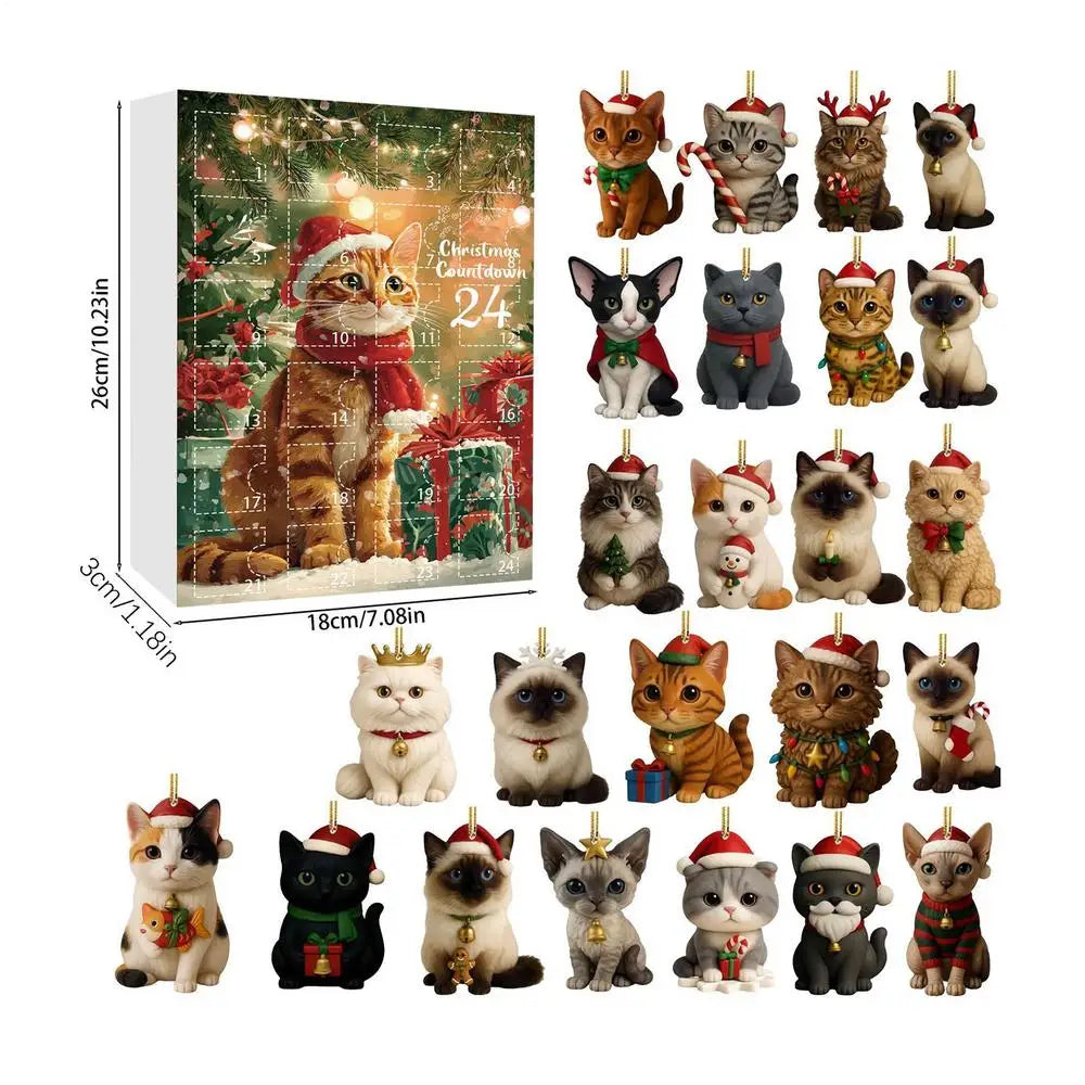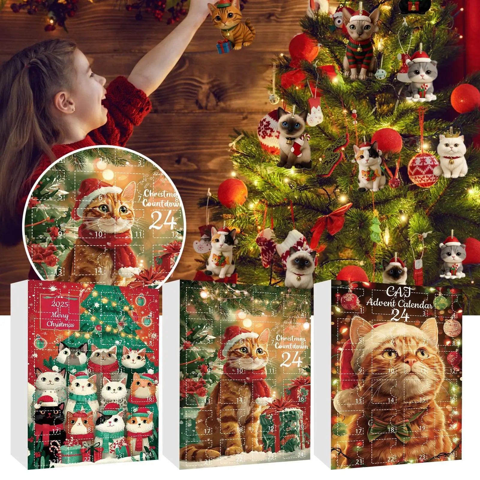 Cat Christmas Countdown Calendar Keychain 2D Acrylic Ornament Charm Advent Calendar Cute Cat Lover Gift Christmas Decorations