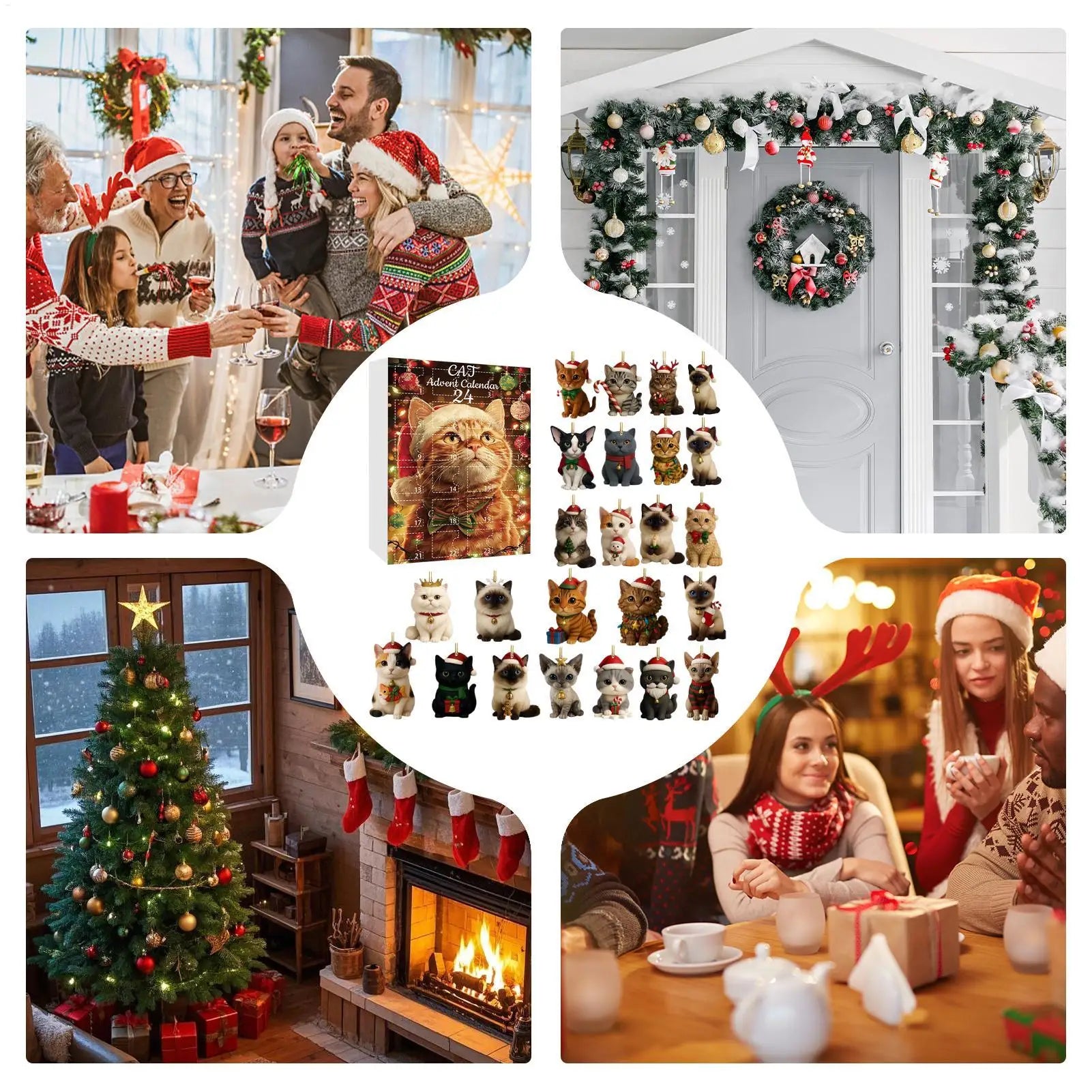 2.Creative Countdown Fun: Christmas countdown calendars with 24 cat illustrations promote family interactive fun by offering a creative way to count down to Christmas, strengthening connections and adding warmth to festive gatherings