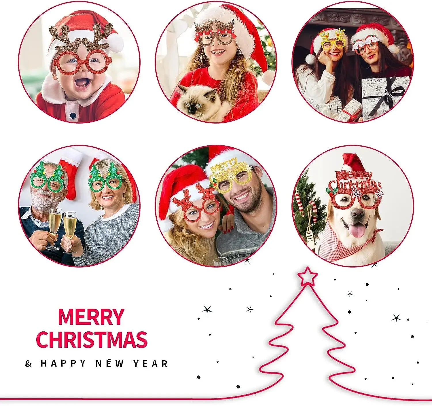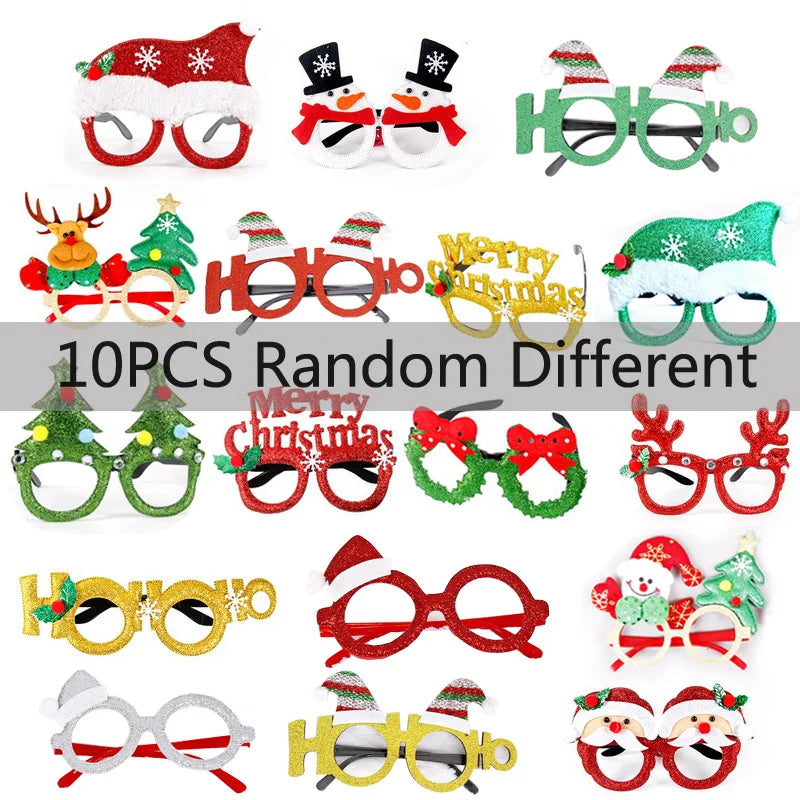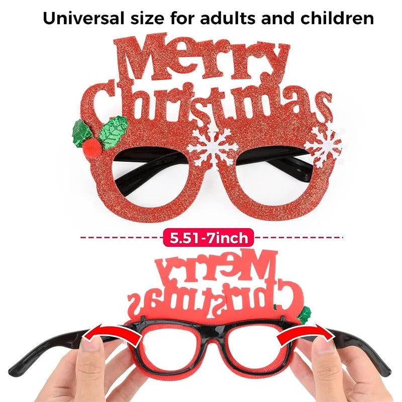 Save Money Christmas Glasses Set: 6/10pcs Christmas Glasses Glitter are designed in classic Chritmas colors, red, green and gold; including santa hat, snowman, christmas tree,rainbow christmas tree glasses,elk horn,etc. Perfect for a photo booth, photo opps, and general fun with the family!