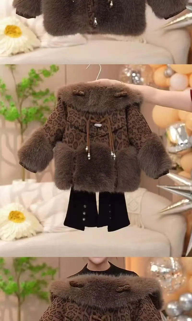 Kids Girls' Winter Coat Children's New Style With Plush and Thickened Korean Version Fashionable Warm Coat 90-140CM