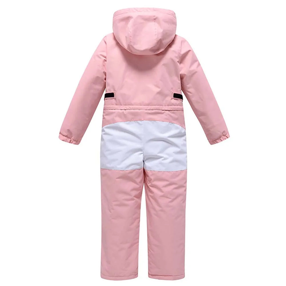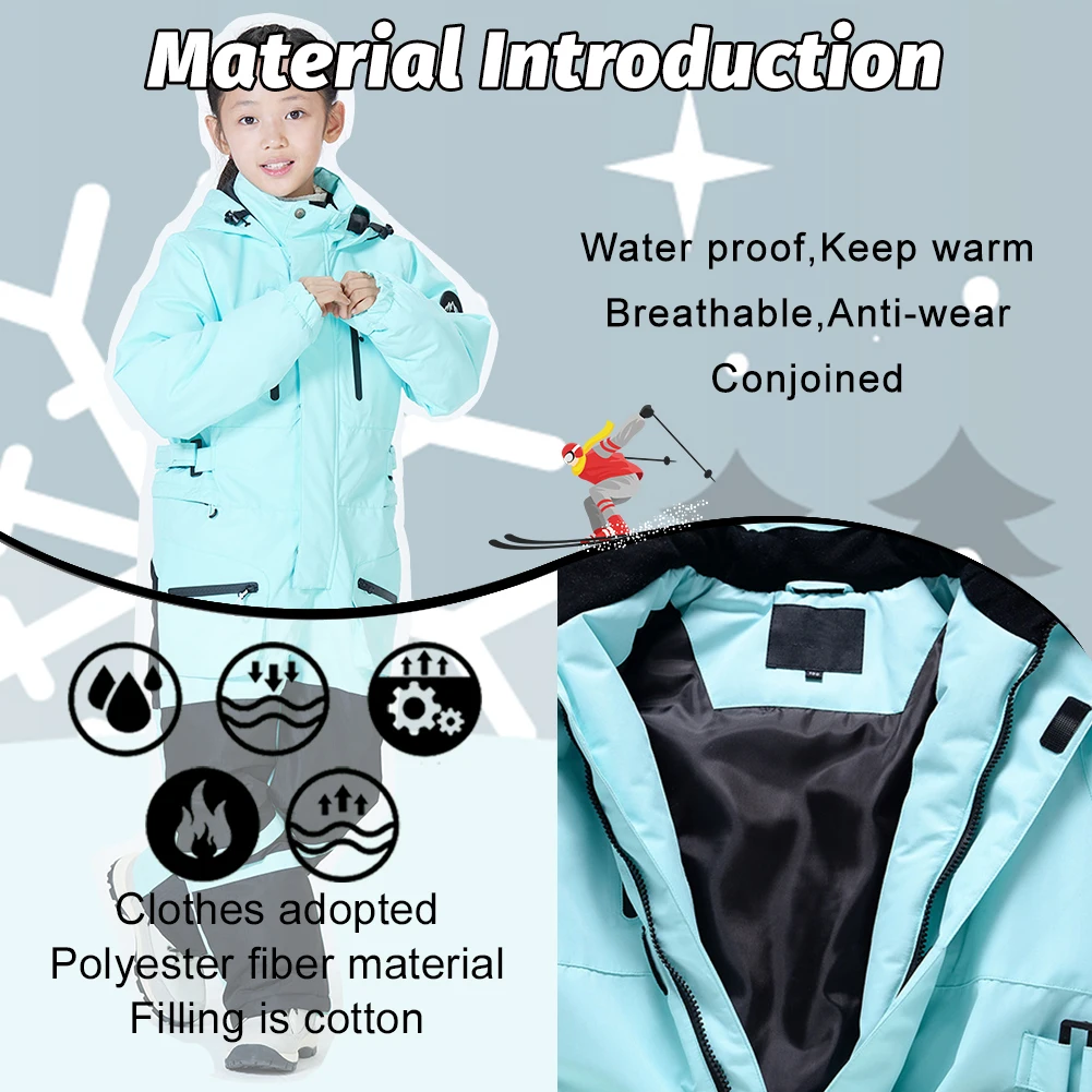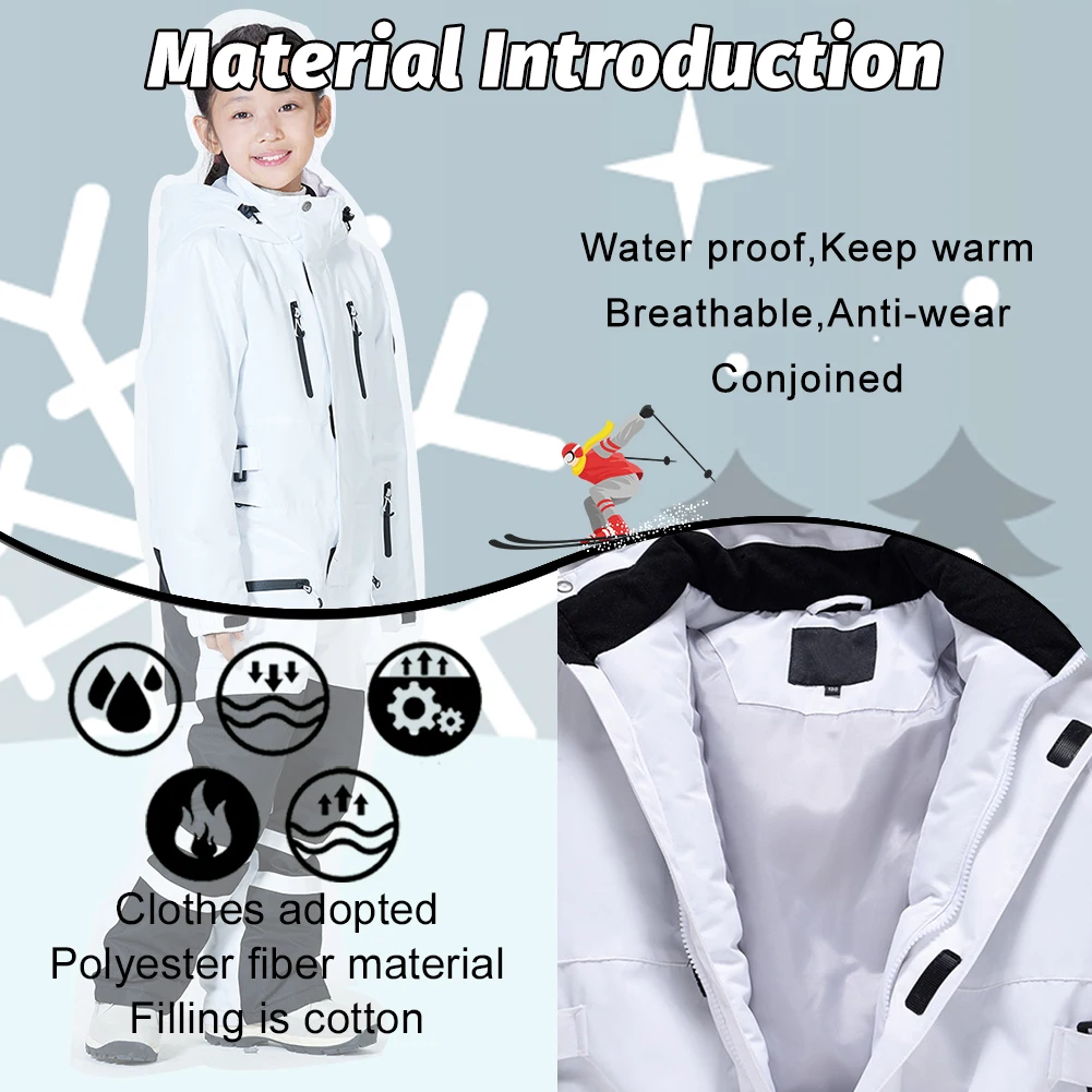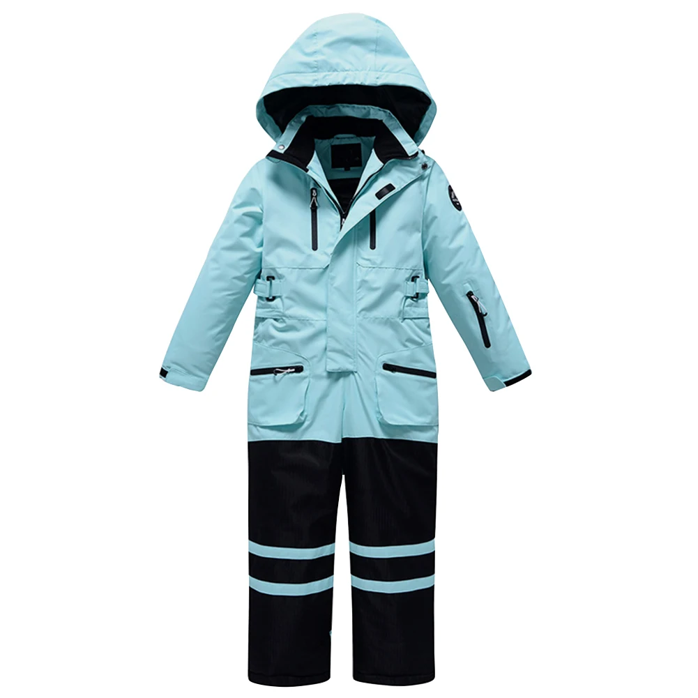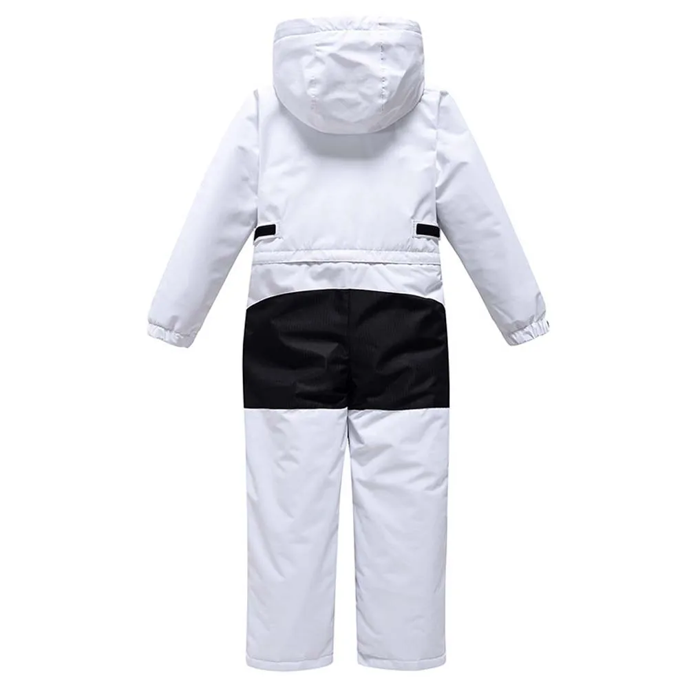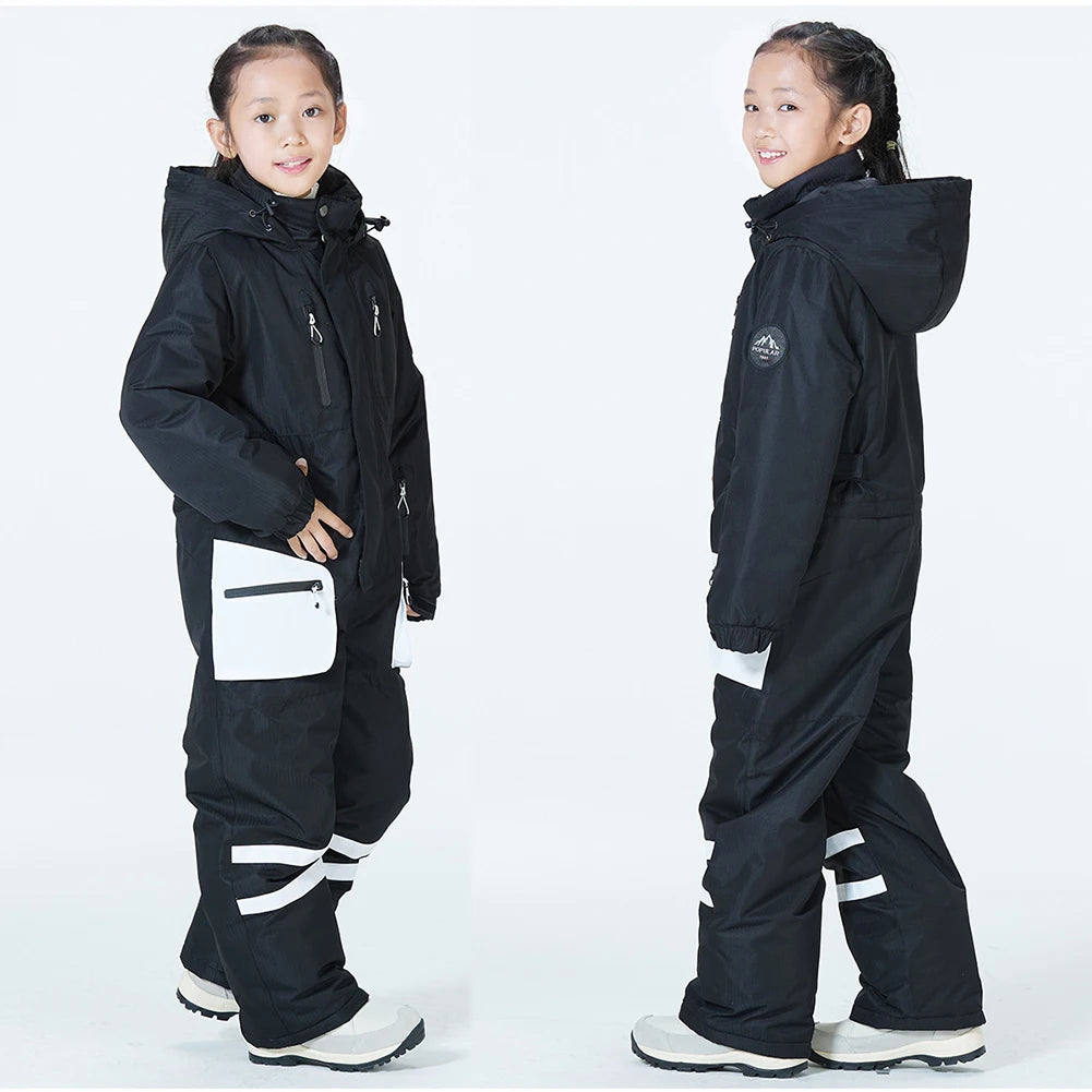 Children's Ski Overalls with Hood Windproof Waterproof Boys Ski Suit Girls Warm One-Piece Snowsuit Kids Winter Snowboarding Wear