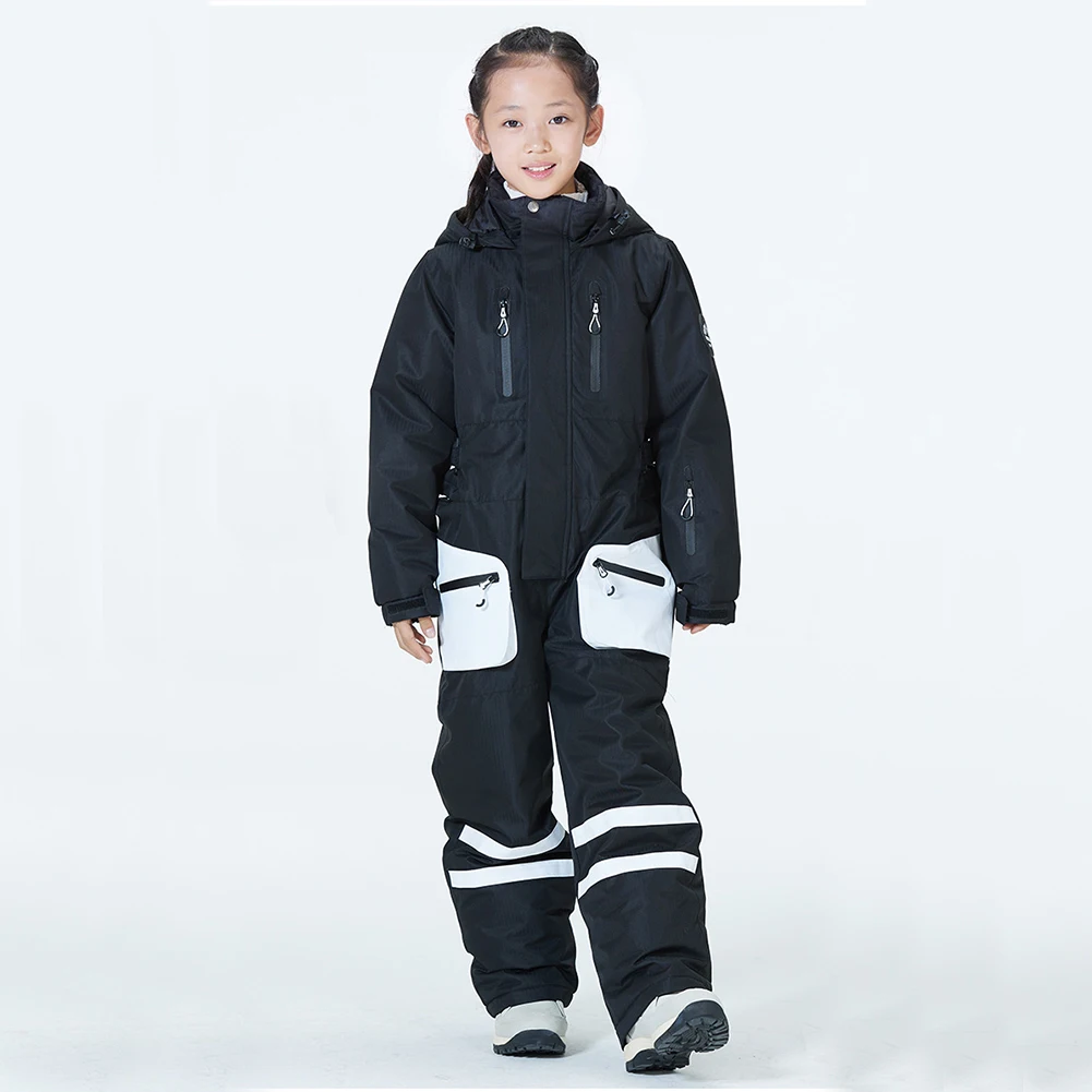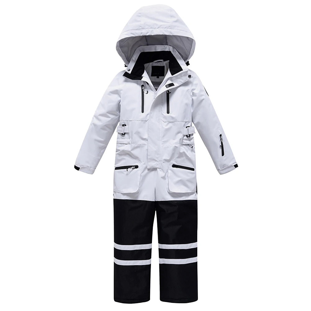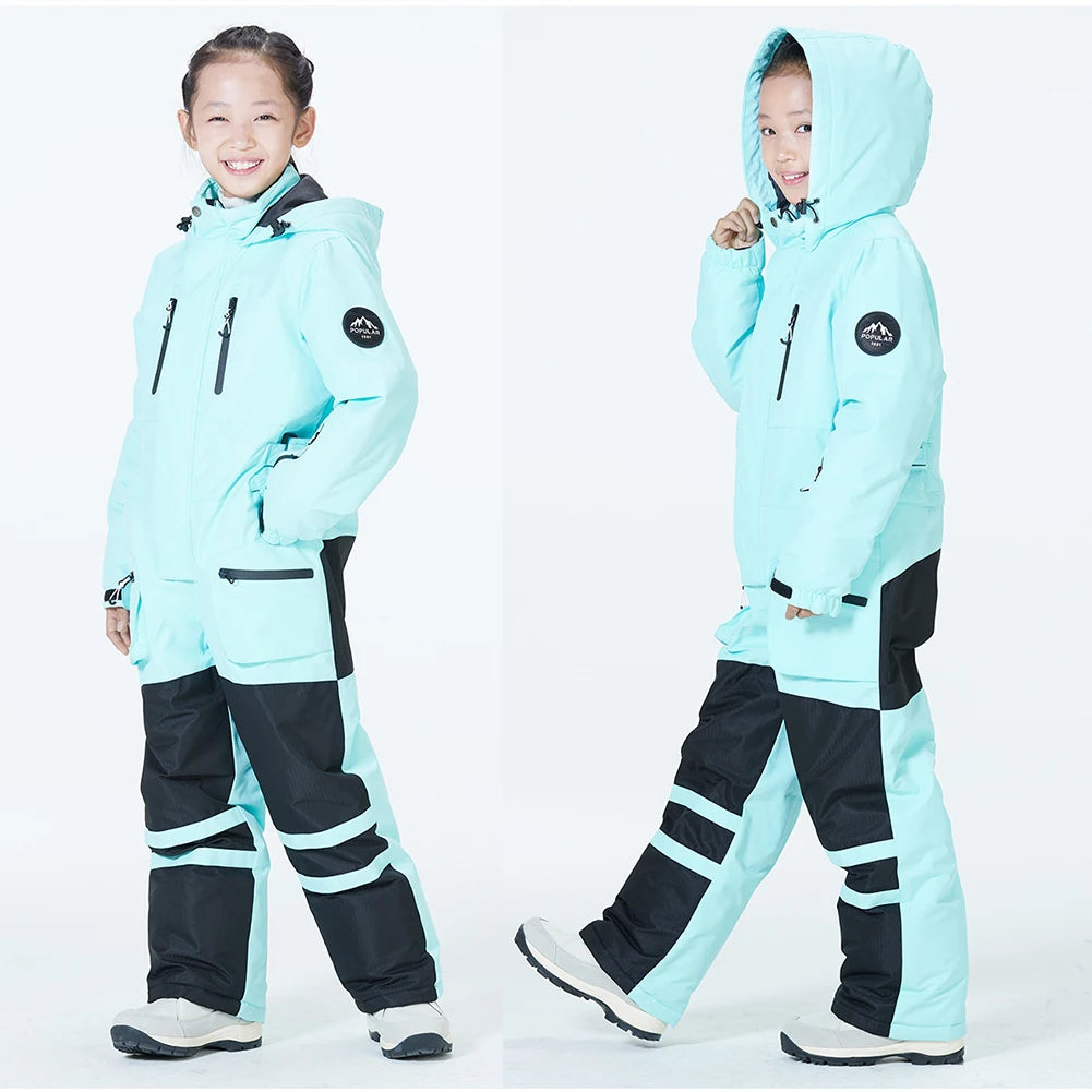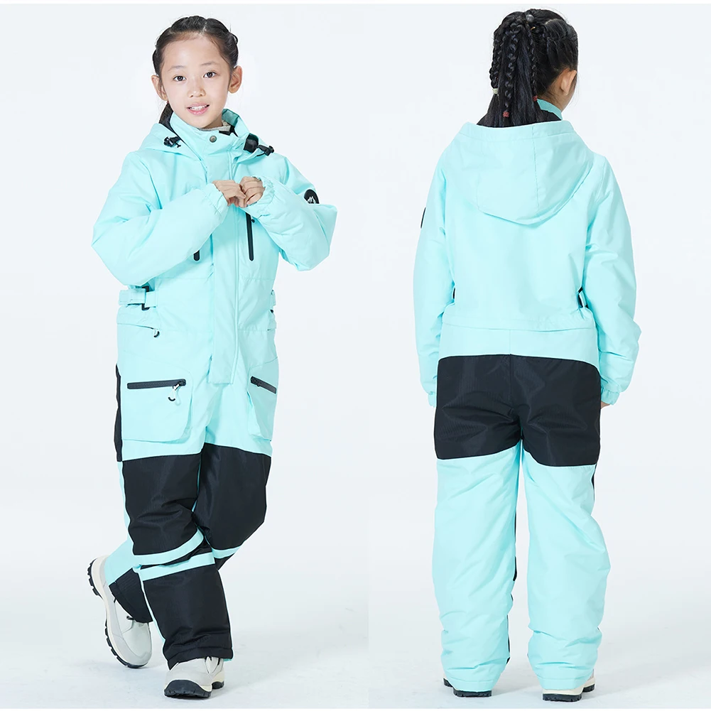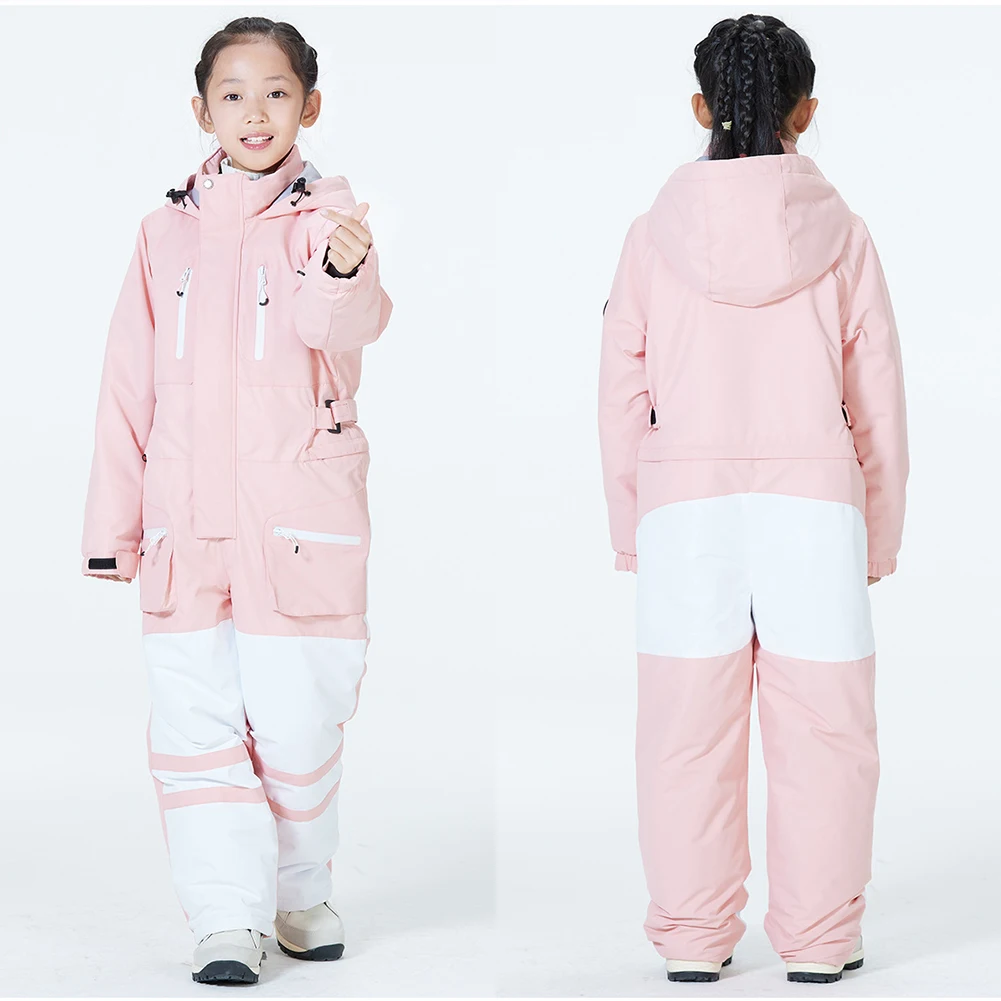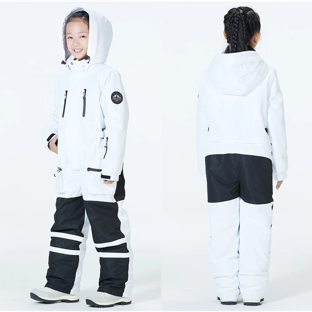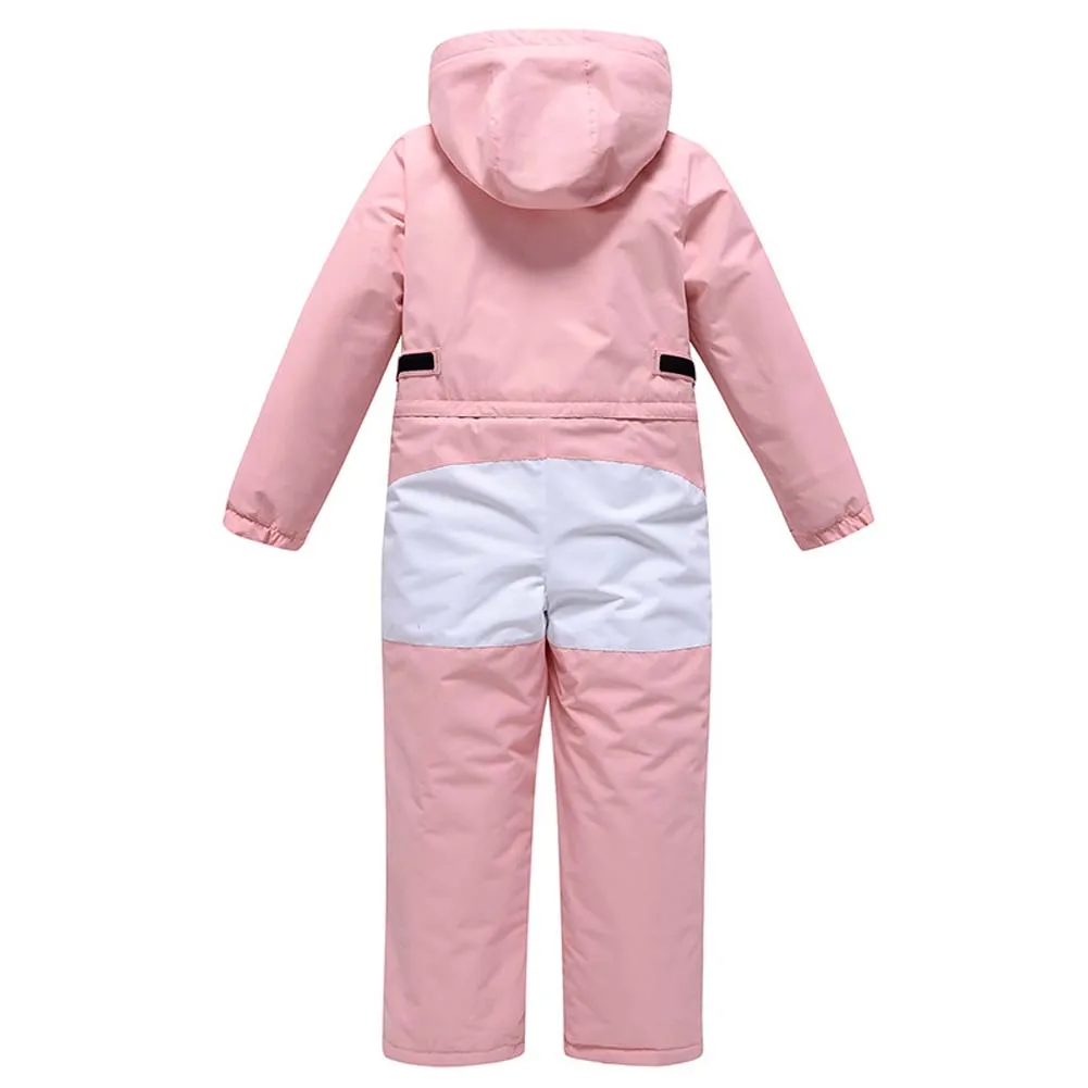 Children's Ski Overalls with Hood Windproof Waterproof Boys Ski Suit Girls Warm One-Piece Snowsuit Kids Winter Snowboarding Wear