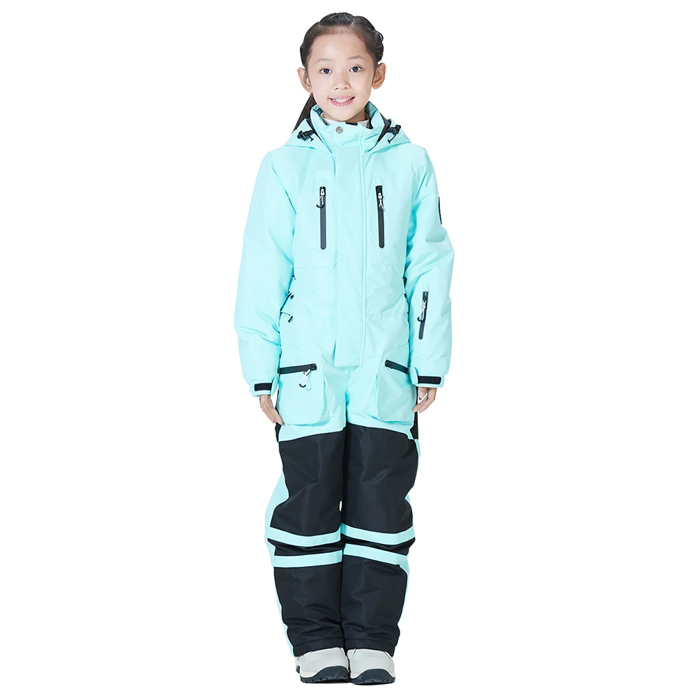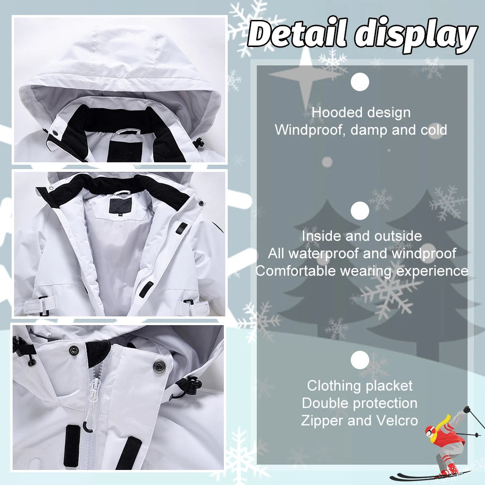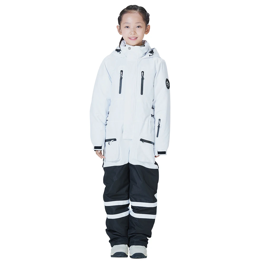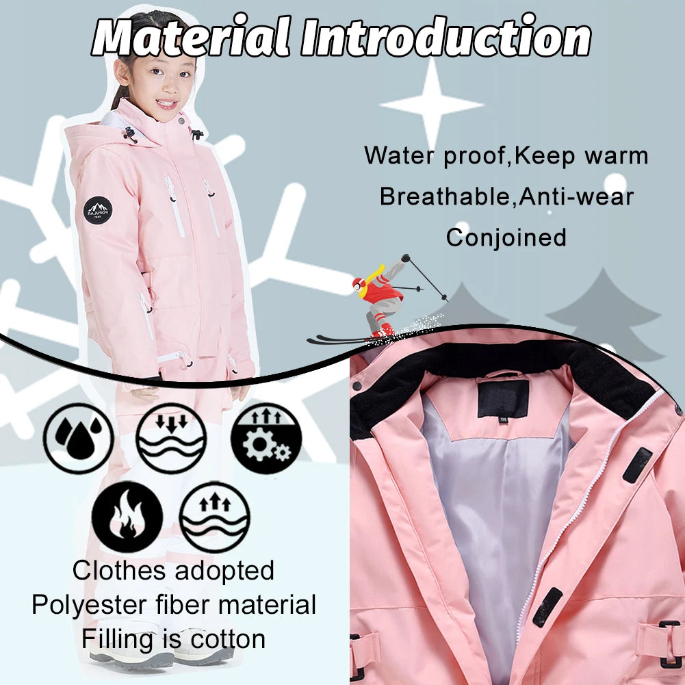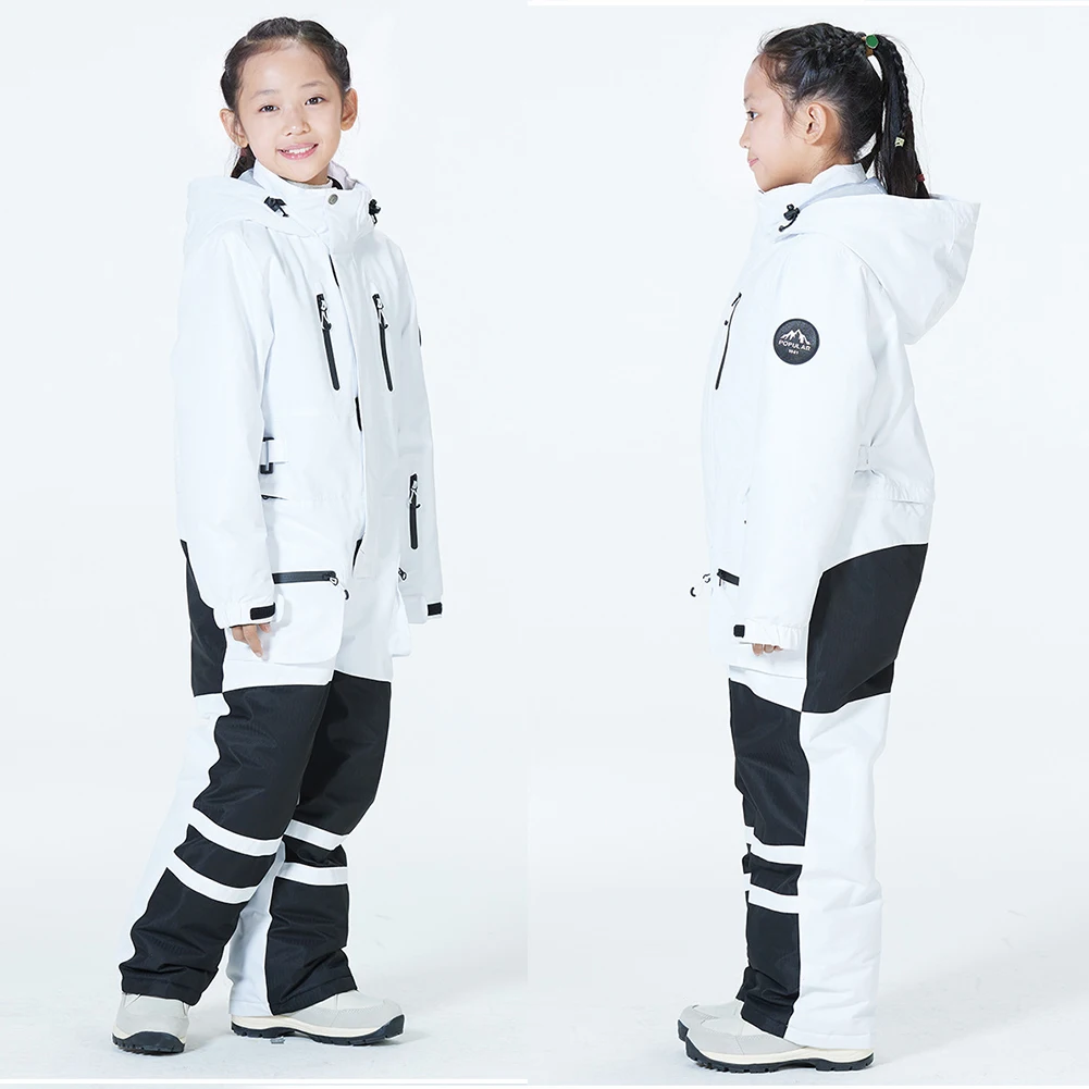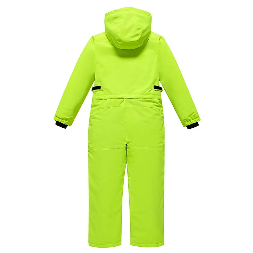 Children's Ski Overalls with Hood Windproof Waterproof Boys Ski Suit Girls Warm One-Piece Snowsuit Kids Winter Snowboarding Wear