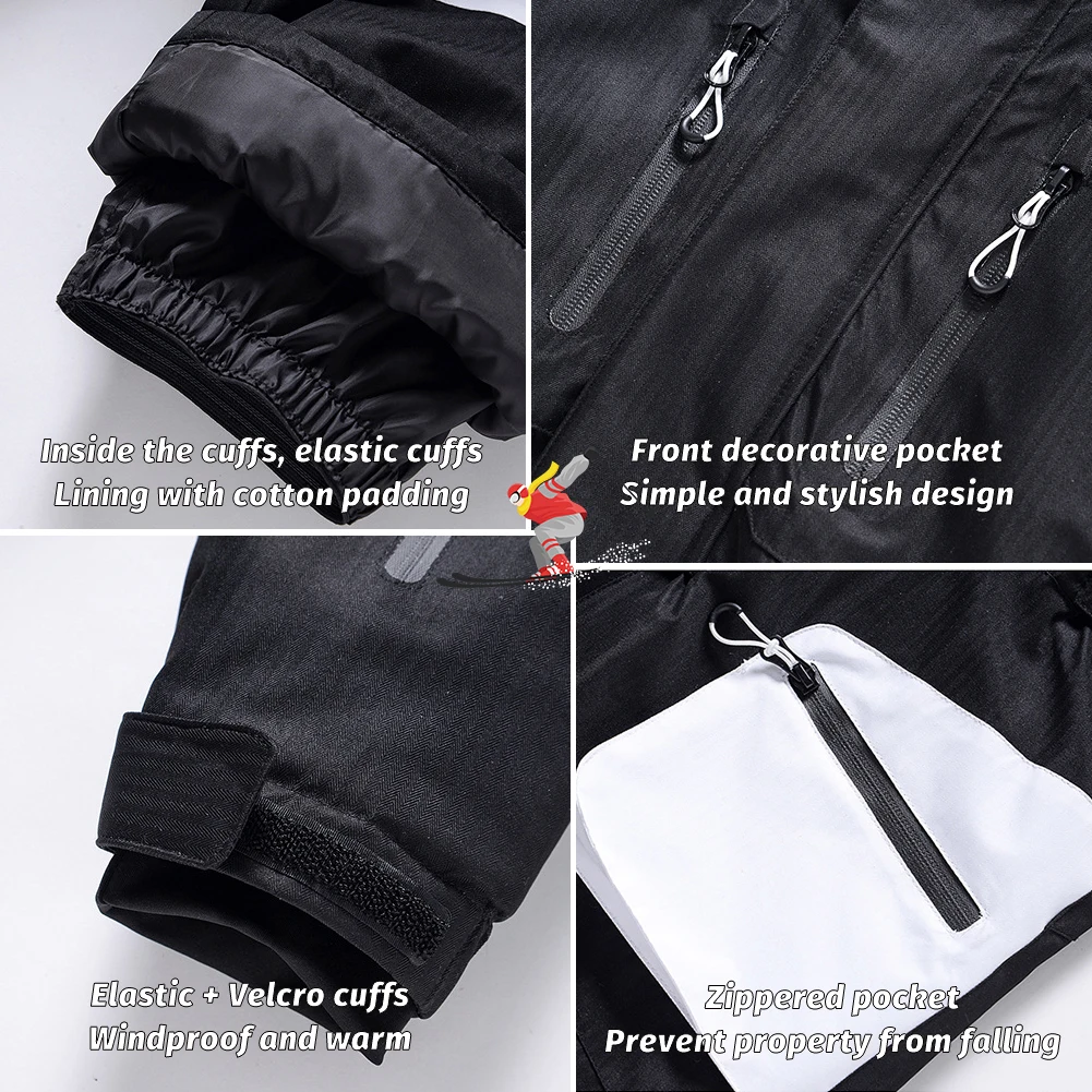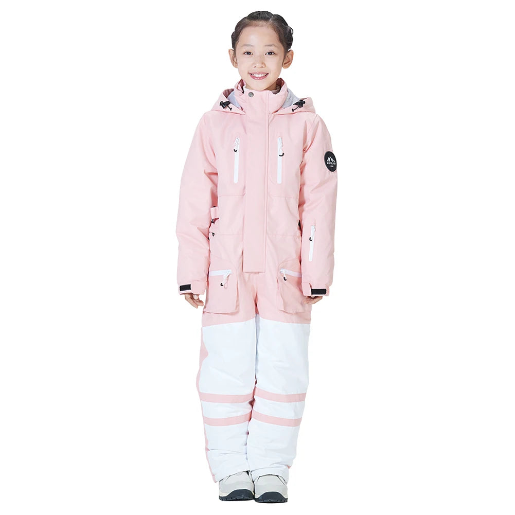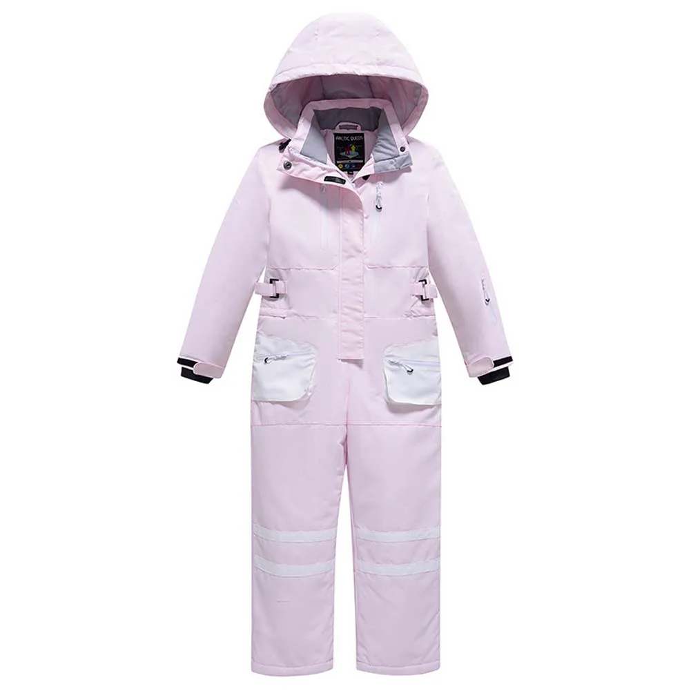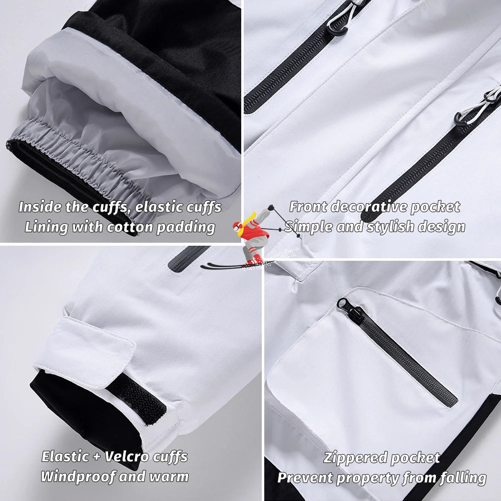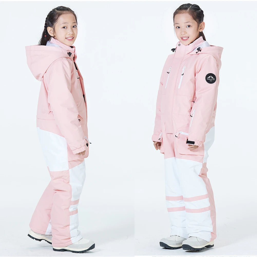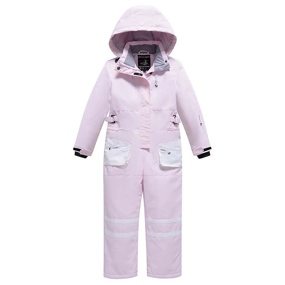 Children's Ski Overalls with Hood Windproof Waterproof Boys Ski Suit Girls Warm One-Piece Snowsuit Kids Winter Snowboarding Wear