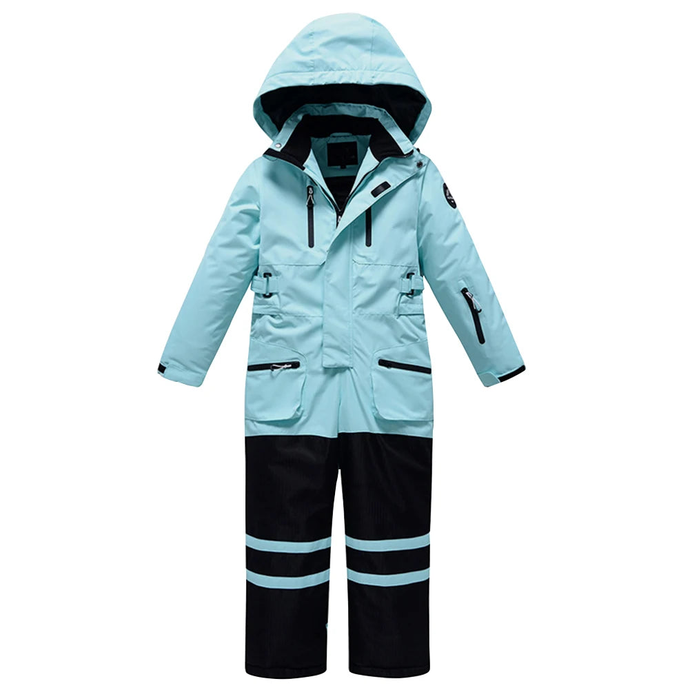 Kids Winter Snowboarding Wear,Children's Ski Overalls with Hood,Windproof Waterproof Boys Ski Suit,Girls Warm One-Piece Snowsuit