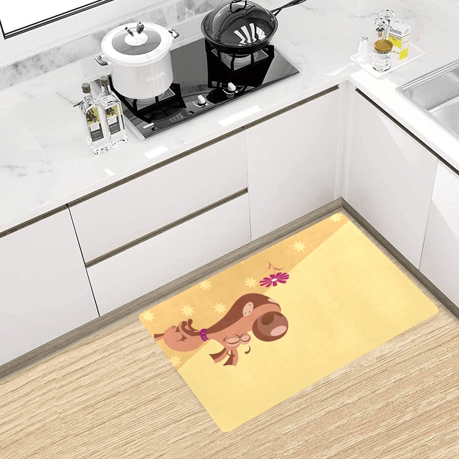 【Product description】Kitchen mat dimensions measure 28"(L) x 17"(W). Stylish and versatile material: durable heat-resistant non-woven fabric top and neoprene rubber non-slip backing. Absorb water and dries quickly, protecting floor from moisture and stain. Easy to clean and thin design fits under the door.