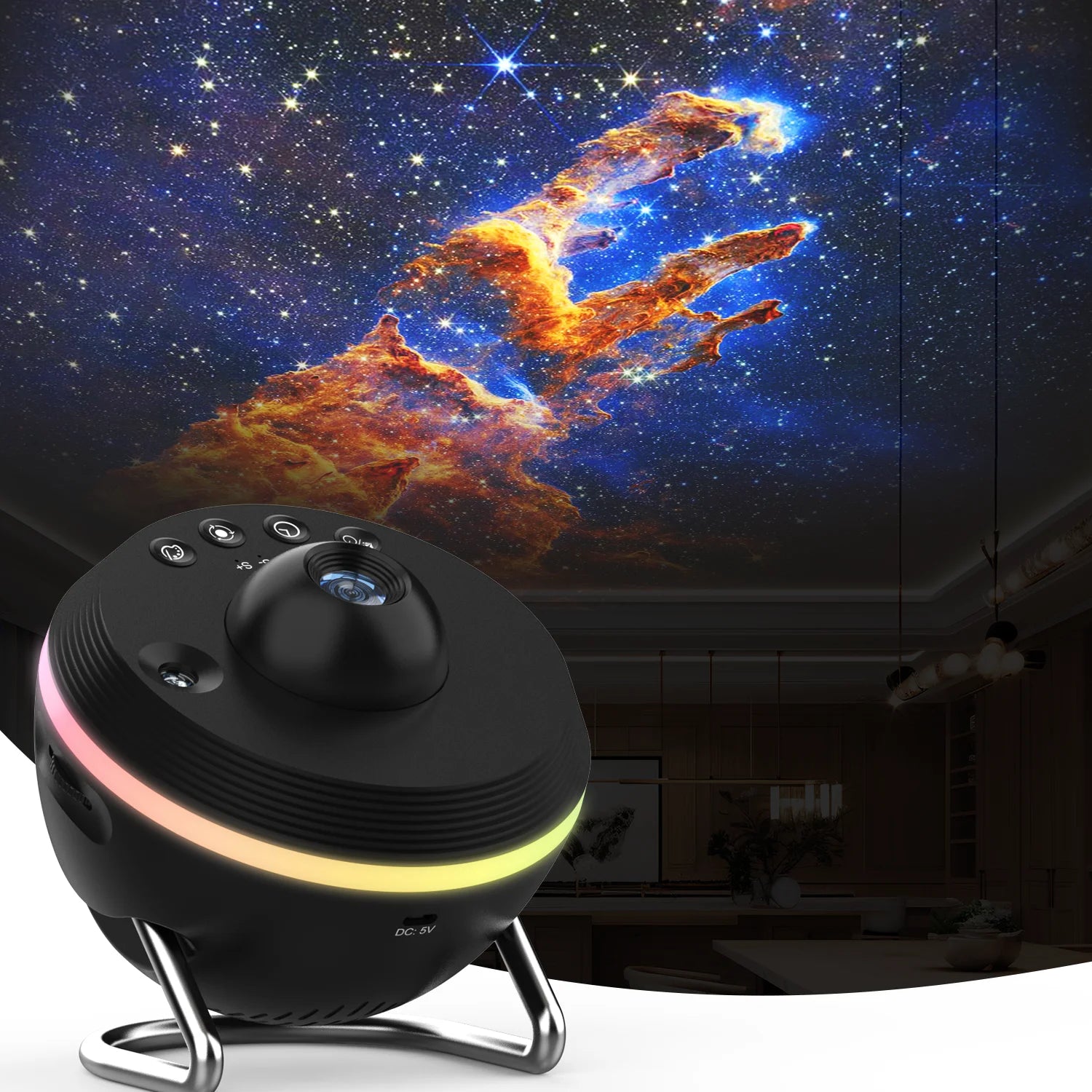 * 12 IN 1 Realistic Planetarium Projector --- This galaxy projector for bedroom comes with 12 display scenarios: Solar System, Earth, Moon, The Milky Way, Galaxy, Andromeda Galaxy, NGC4302-NGC4298, Hubble Deep Field, M60--UCD1, North America Nebula, Mystic Mountain, and Small Magellanic Cloud.