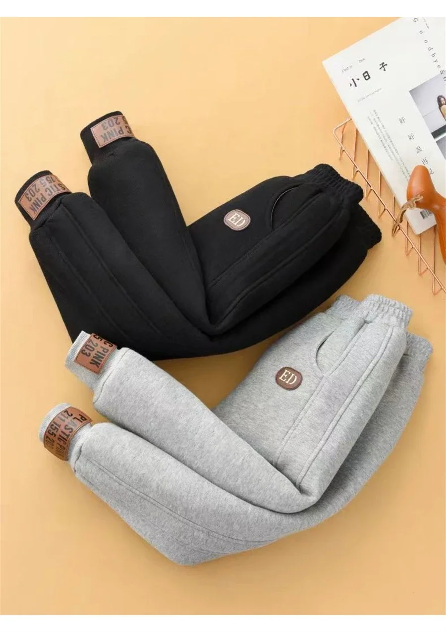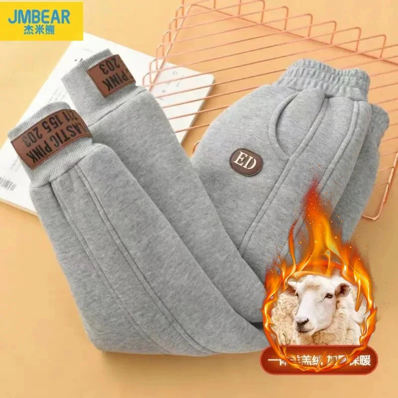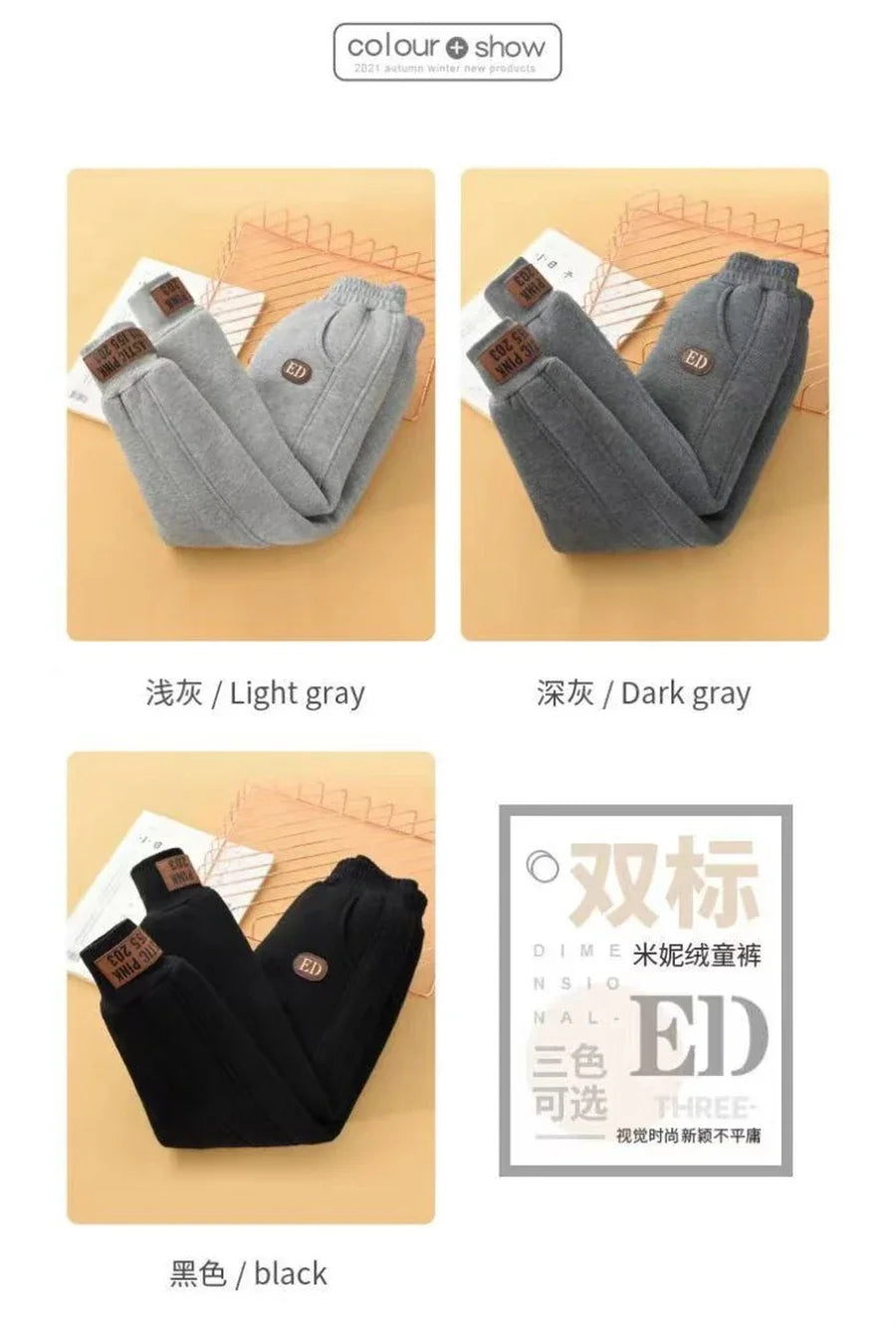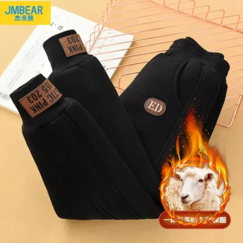 Thicken Lambswool Kids Sweatpants Winter Warm Boys/Girls Pantalones Fleece Lined Snow Wear Pants Elastic Waist Children Joggers