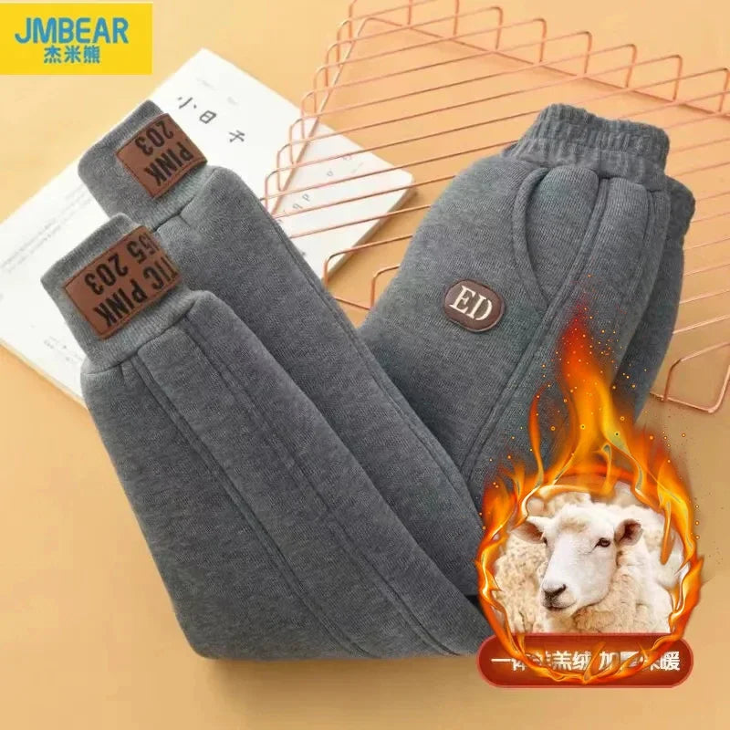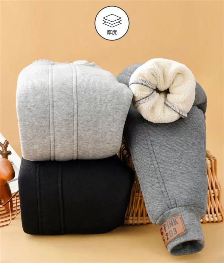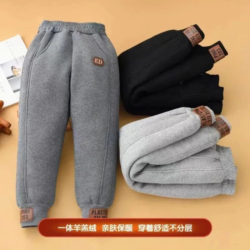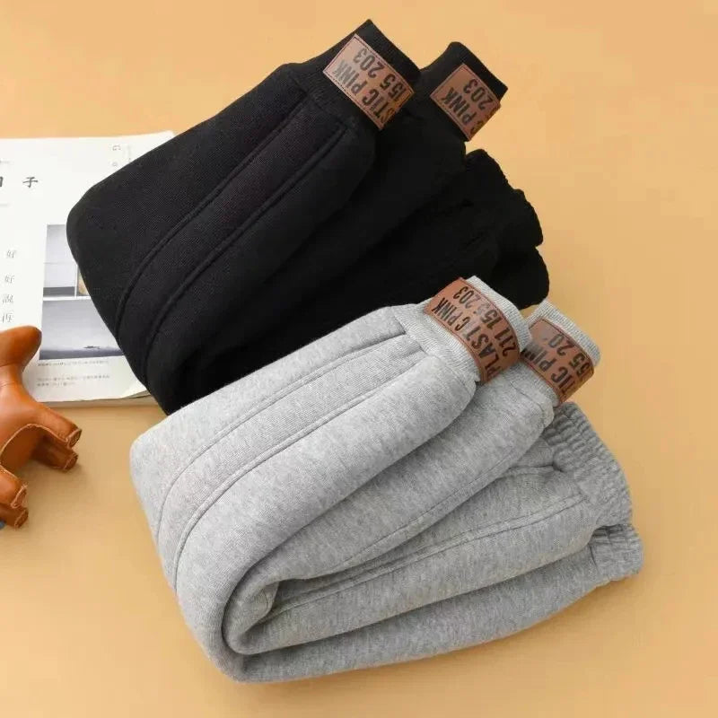 Thicken Lambswool Kids Sweatpants Winter Warm Boys/Girls Pantalones Fleece Lined Snow Wear Pants Elastic Waist Children Joggers