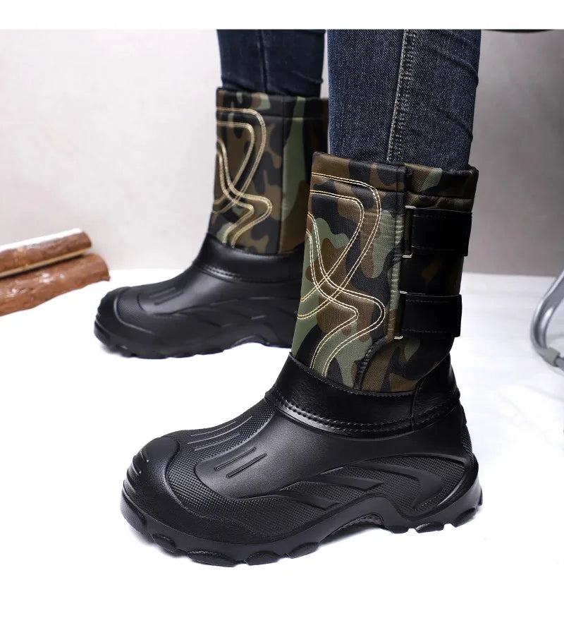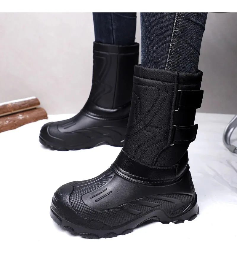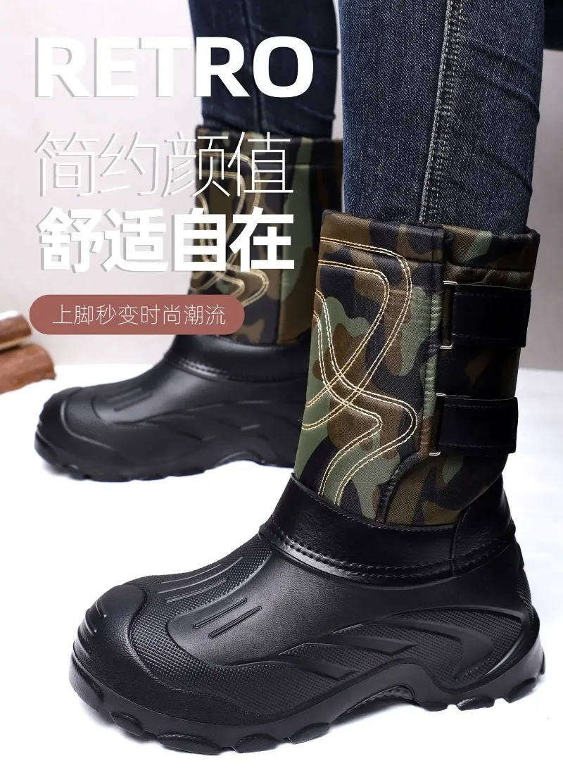 Men Snow Boots Outdoor Waterproof Fishing Boots Winter Plush Warm Cotton Boot Lightweight EVA Work Boots Winter Cotton RainBoots