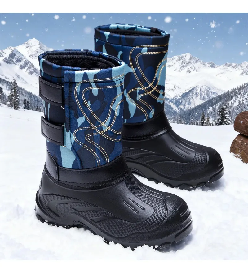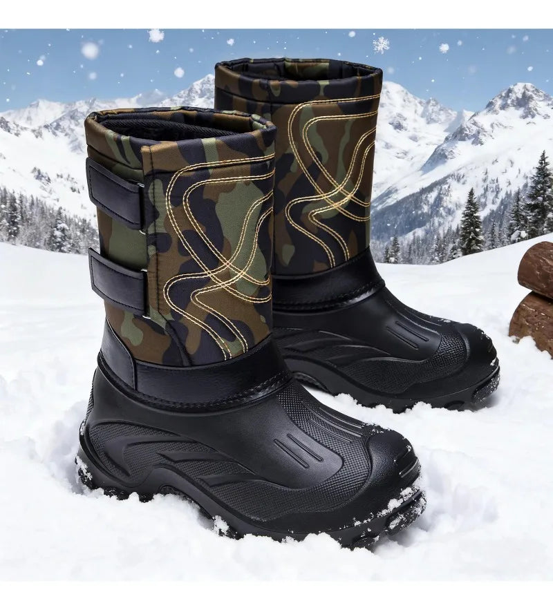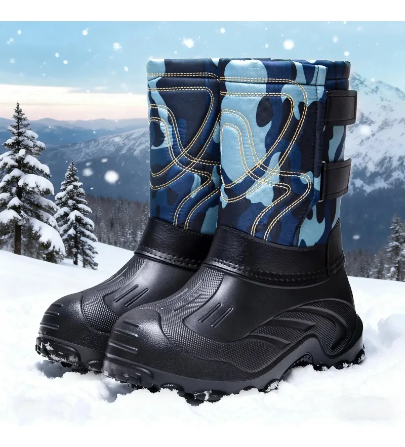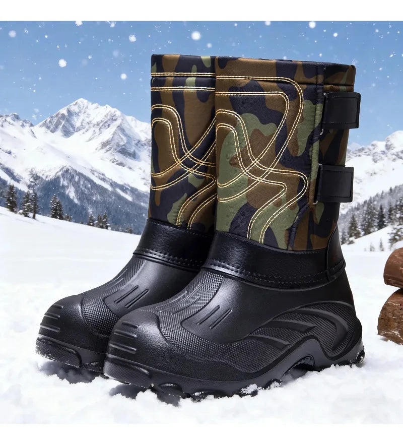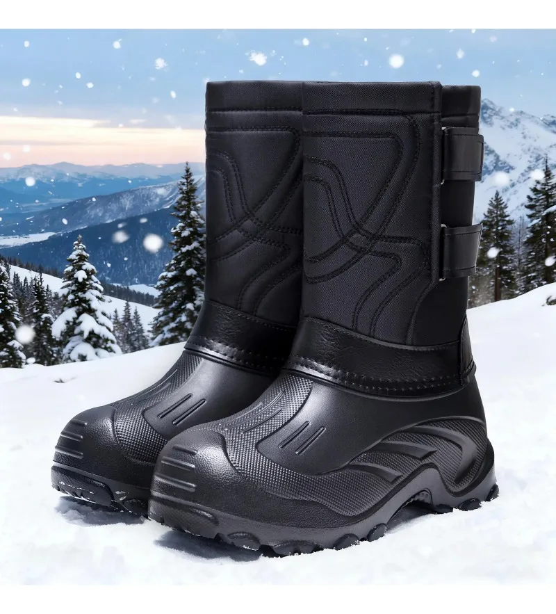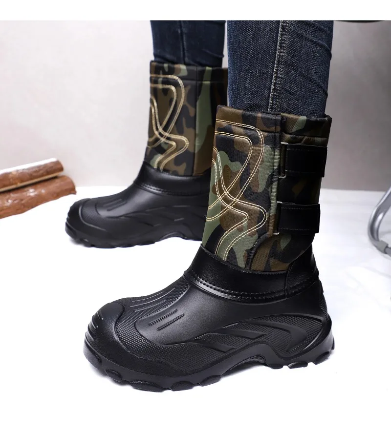 Winter Boots for Men Outdoor Waterproof Fishing Boots Plush Warm Mid-calf Cotton Shoes Men Snow Boots Lightweight EVA Work Botas