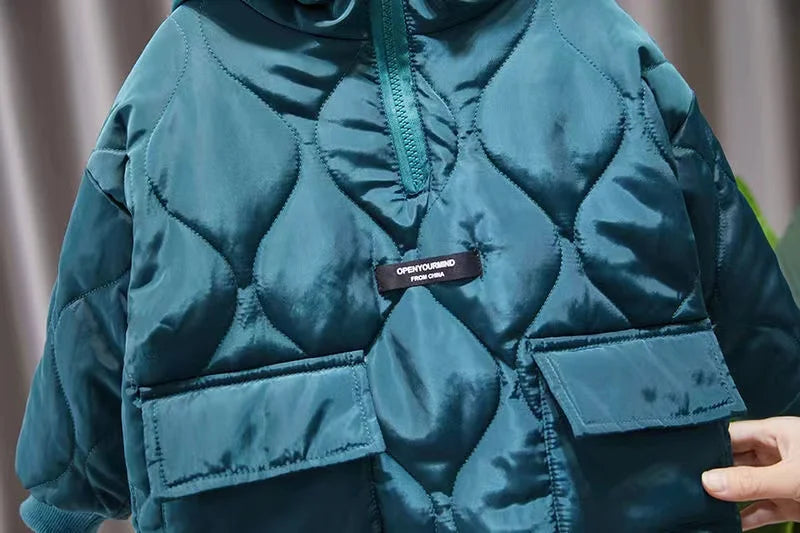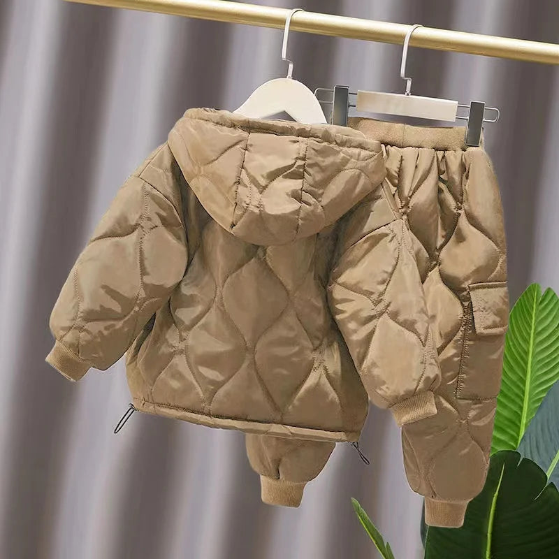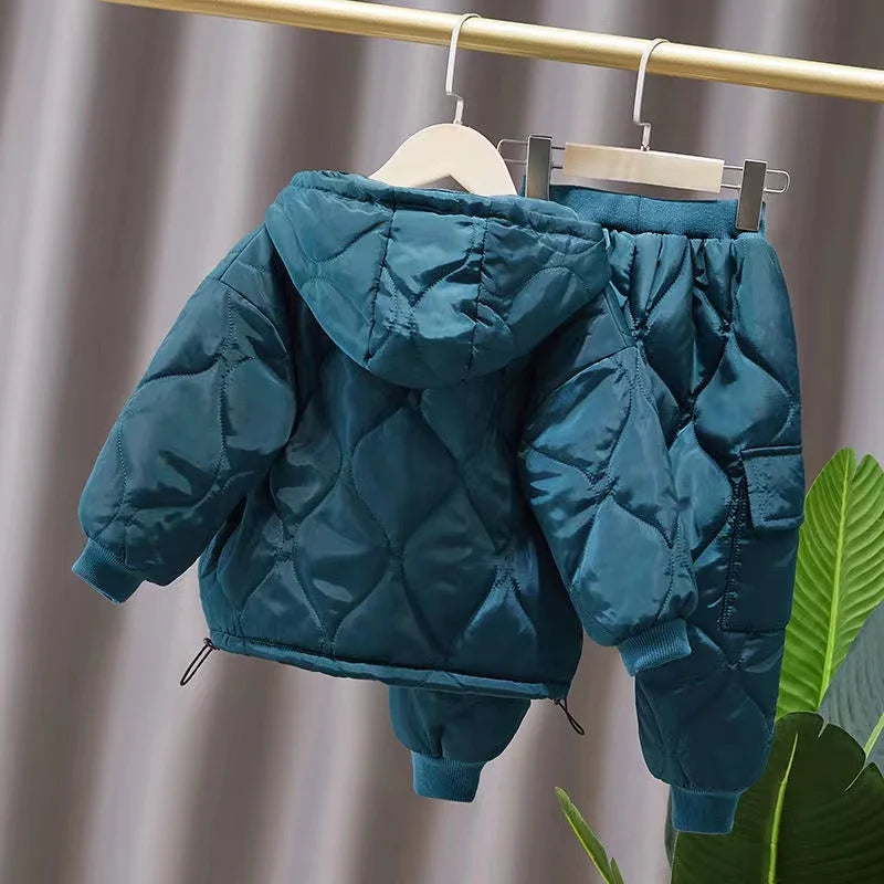 Winter Children Clothes Sets Kids Boys Girls Hooded Warm Cotton Velvet Pullover Coats Outerwear+Pants 2Pcs Snowsuits New1-8Y